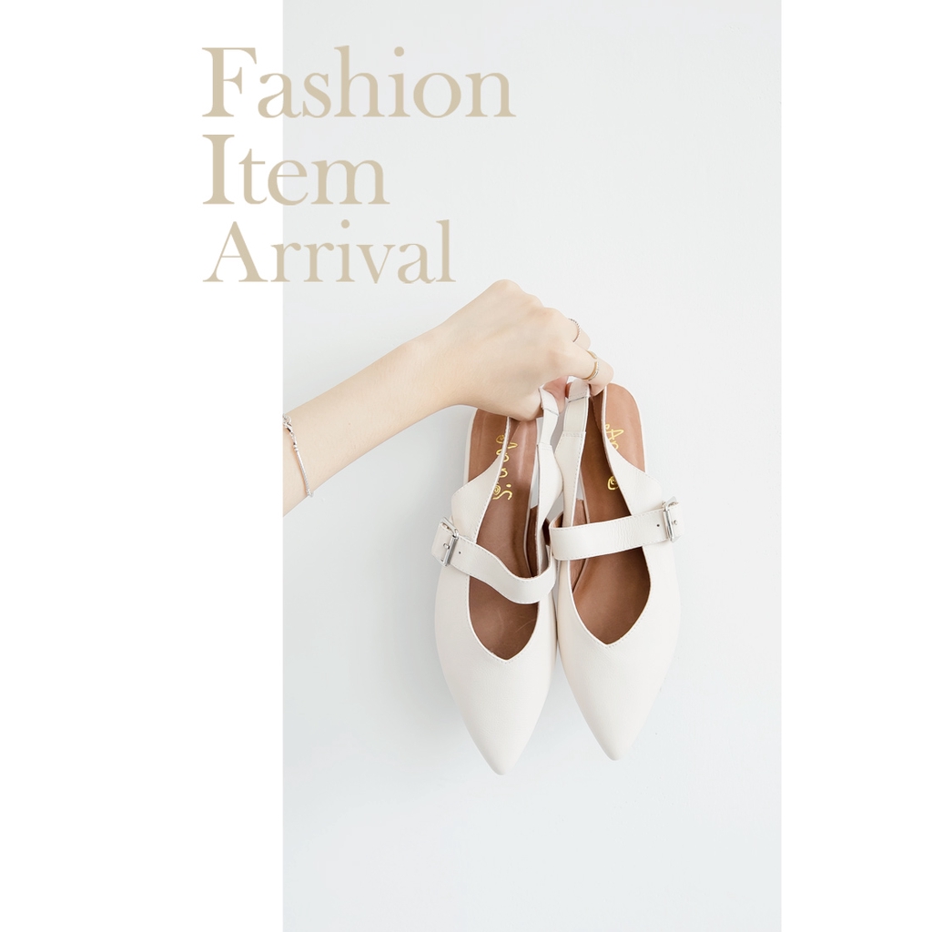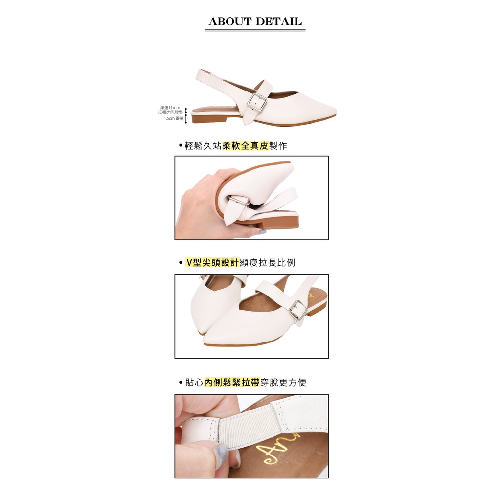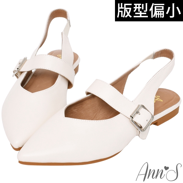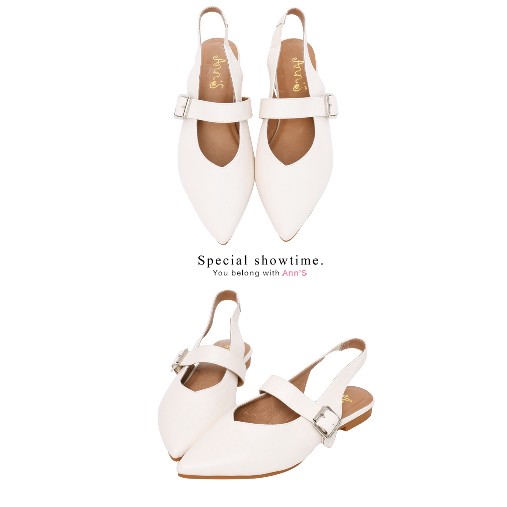 Ann’S寬肉腳板OK拉帶可調尖頭柔軟真皮平底鞋-白