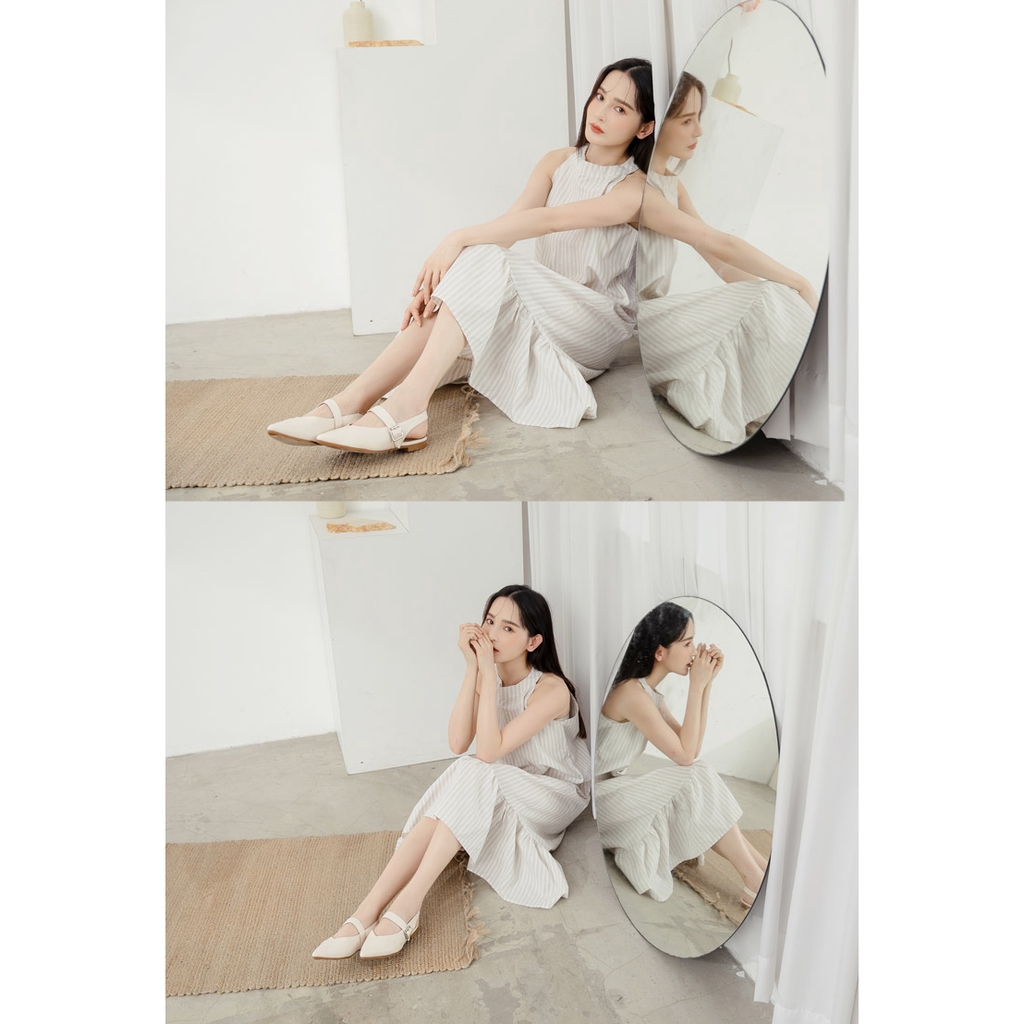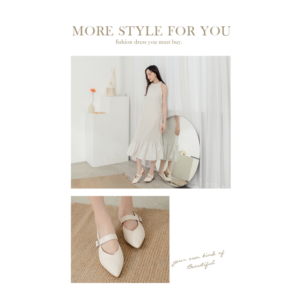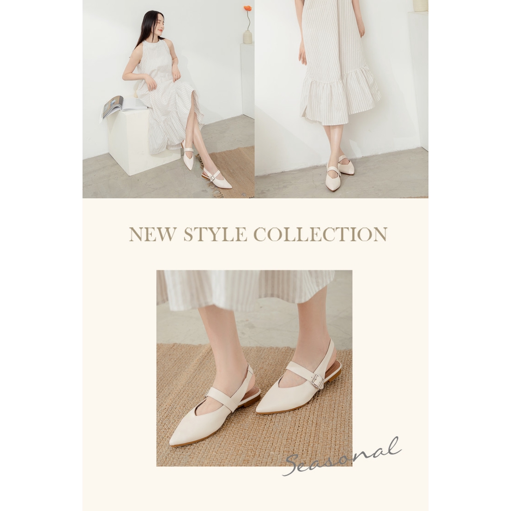 Ann’S寬肉腳板OK拉帶可調尖頭柔軟真皮平底鞋-白