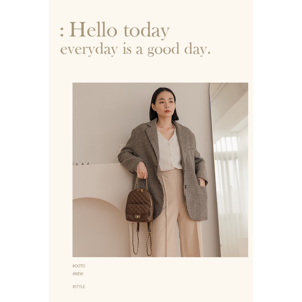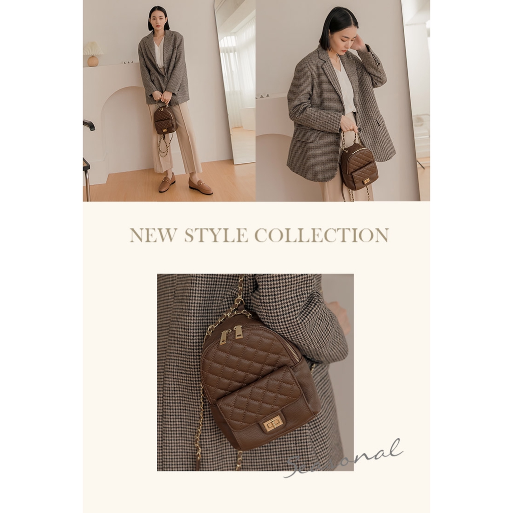 Ann’S全真皮牛皮菱格車線金鍊迷你後背包-咖
