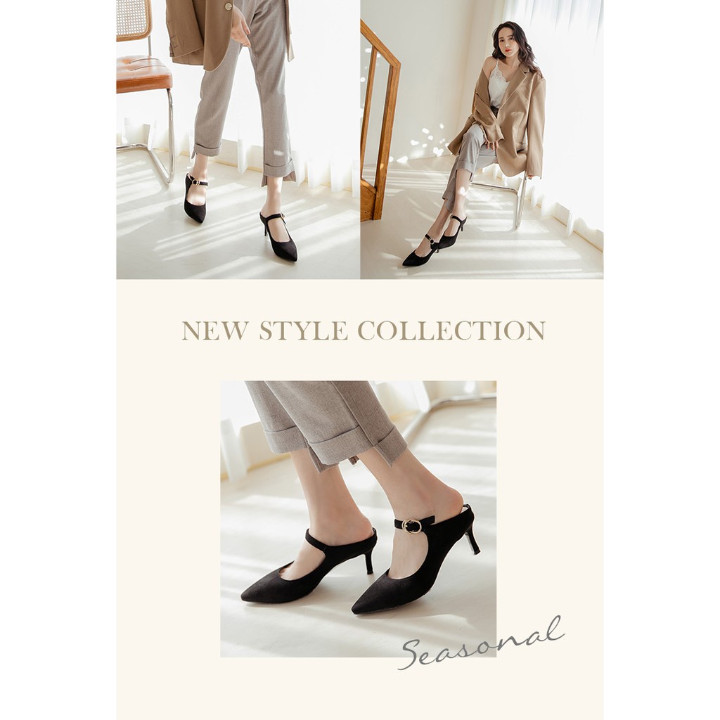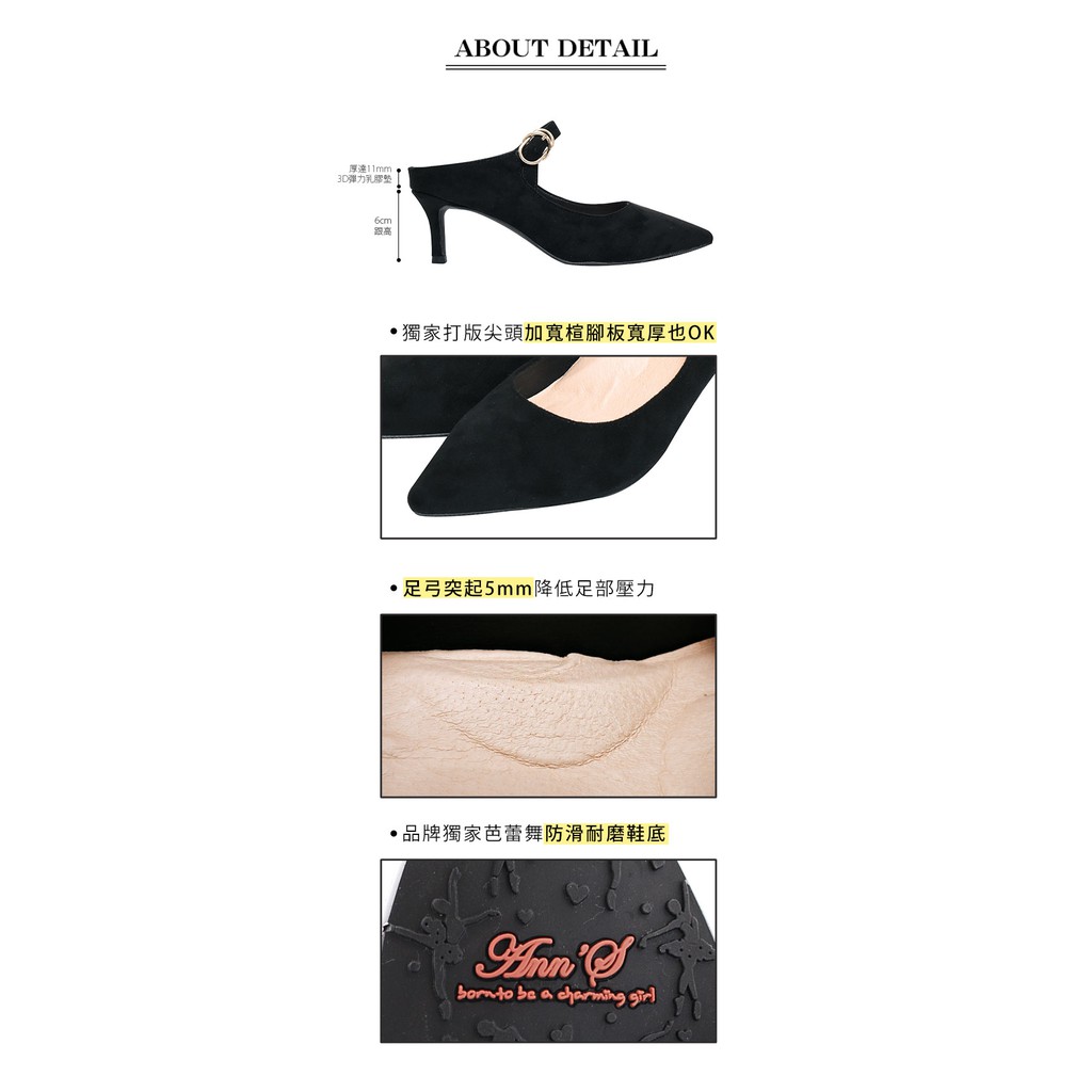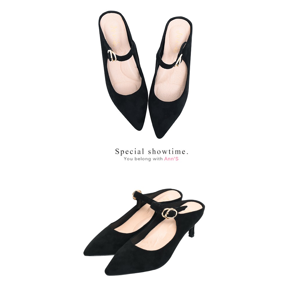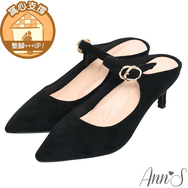 Ann’S美型不散場-顯瘦瑪莉珍尖頭穆勒細跟鞋6cm-黑