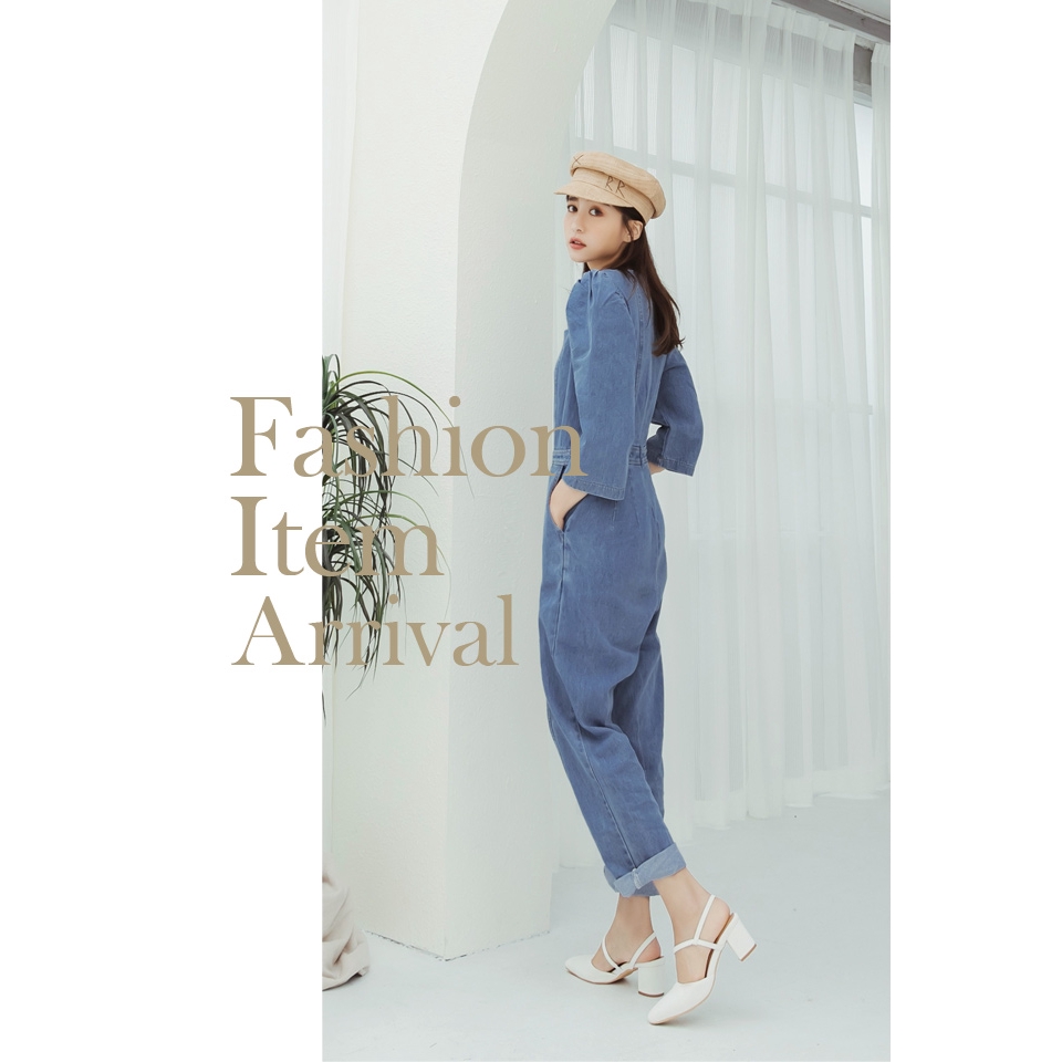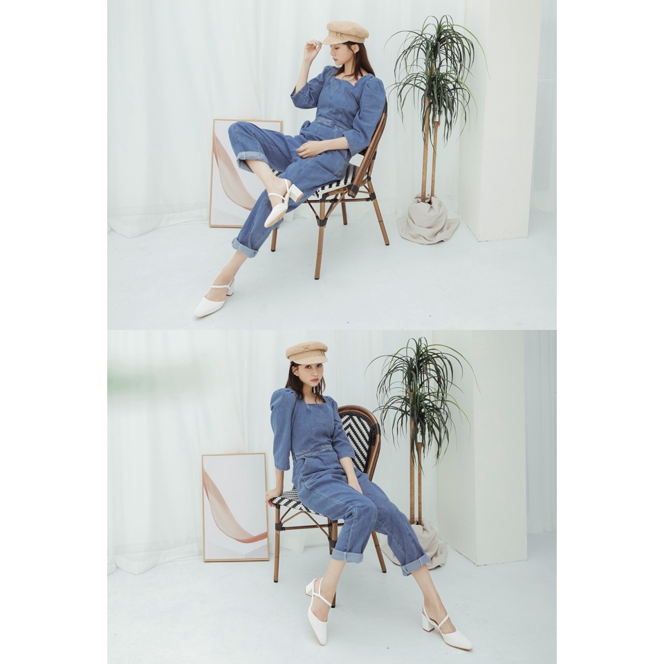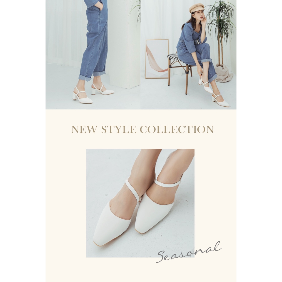 Ann’S霧感柔情-顯瘦腳背斜帶拉帶粗跟方頭跟鞋-白