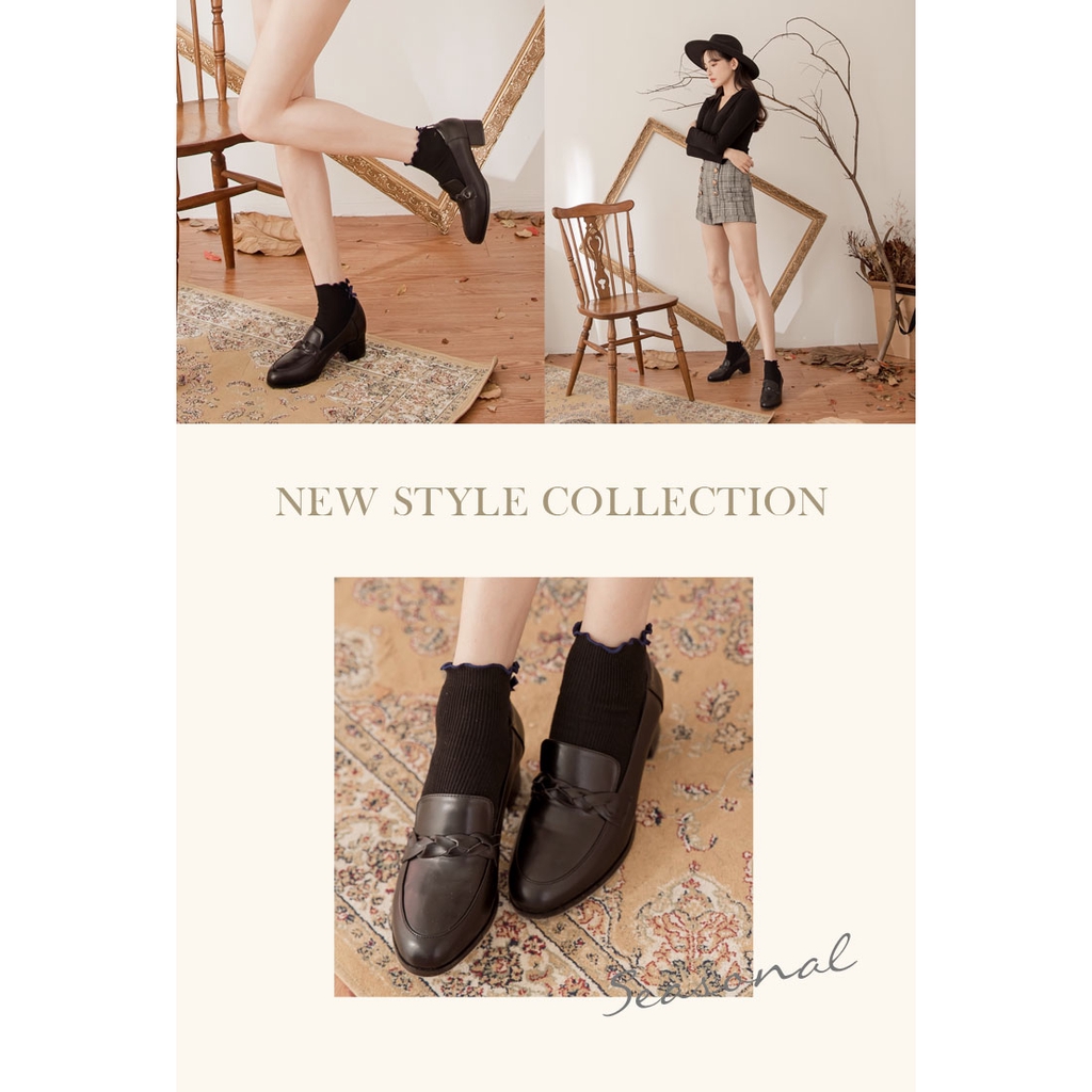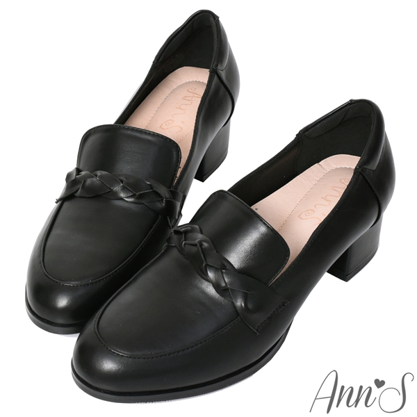 Ann’S學院立體編織麻花粗跟樂福鞋-黑