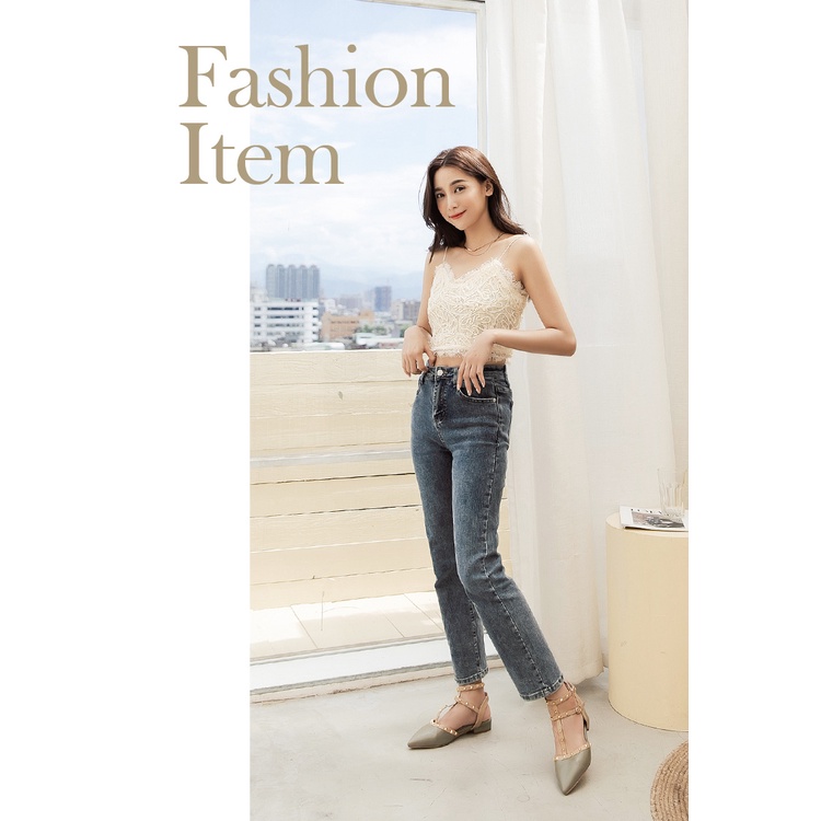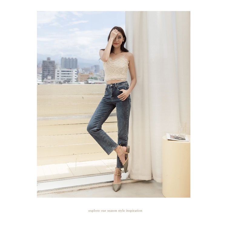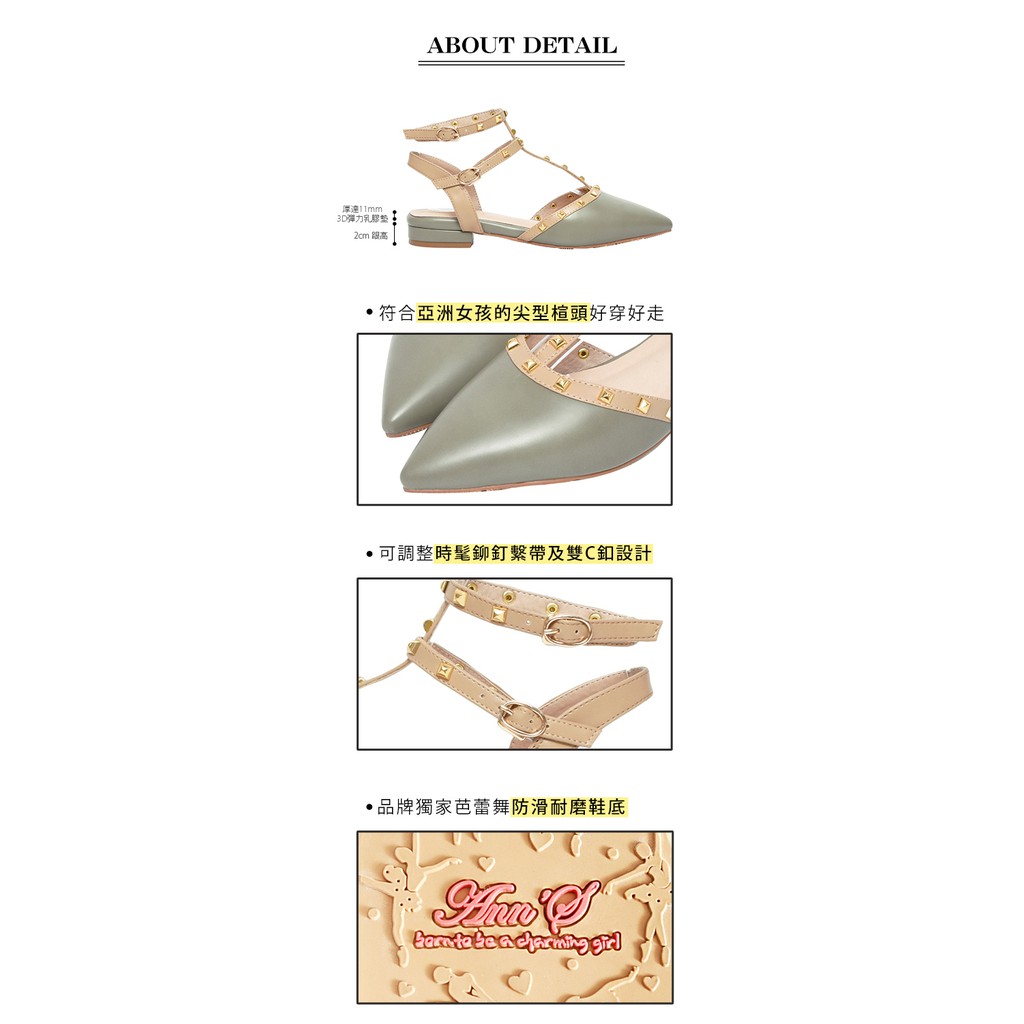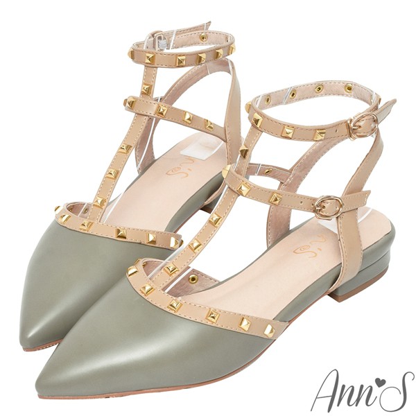 Ann’S修練氣質-T字繞踝金色鉚釘尖頭鞋2cm-綠