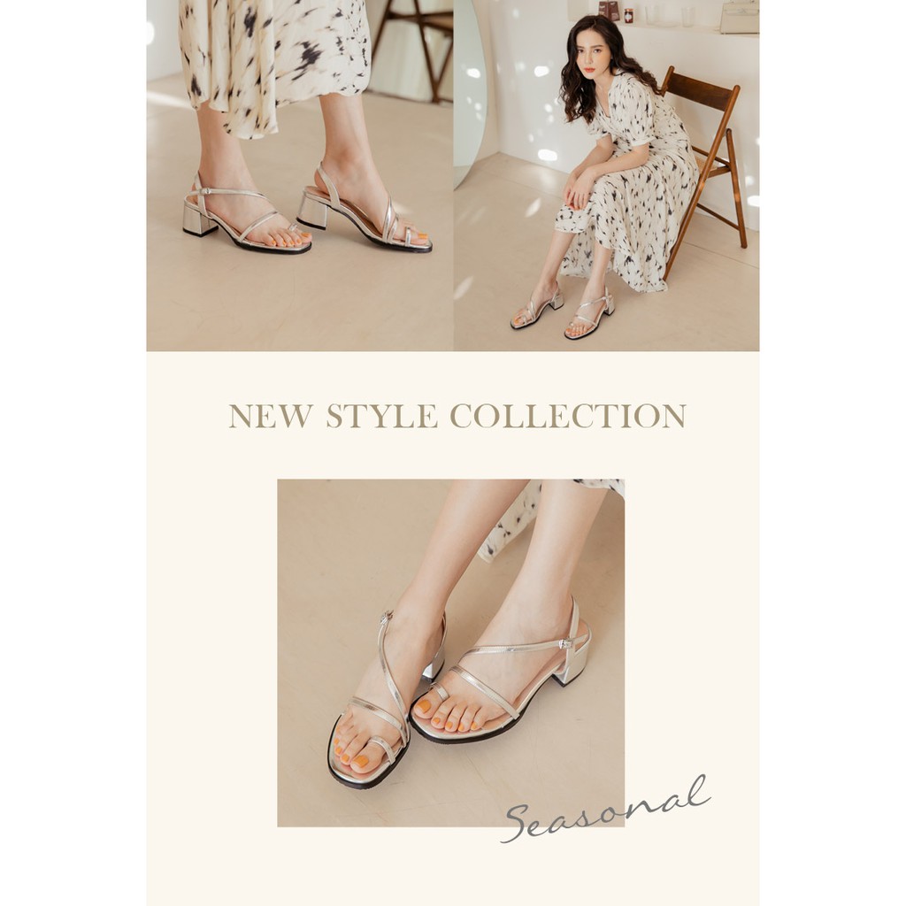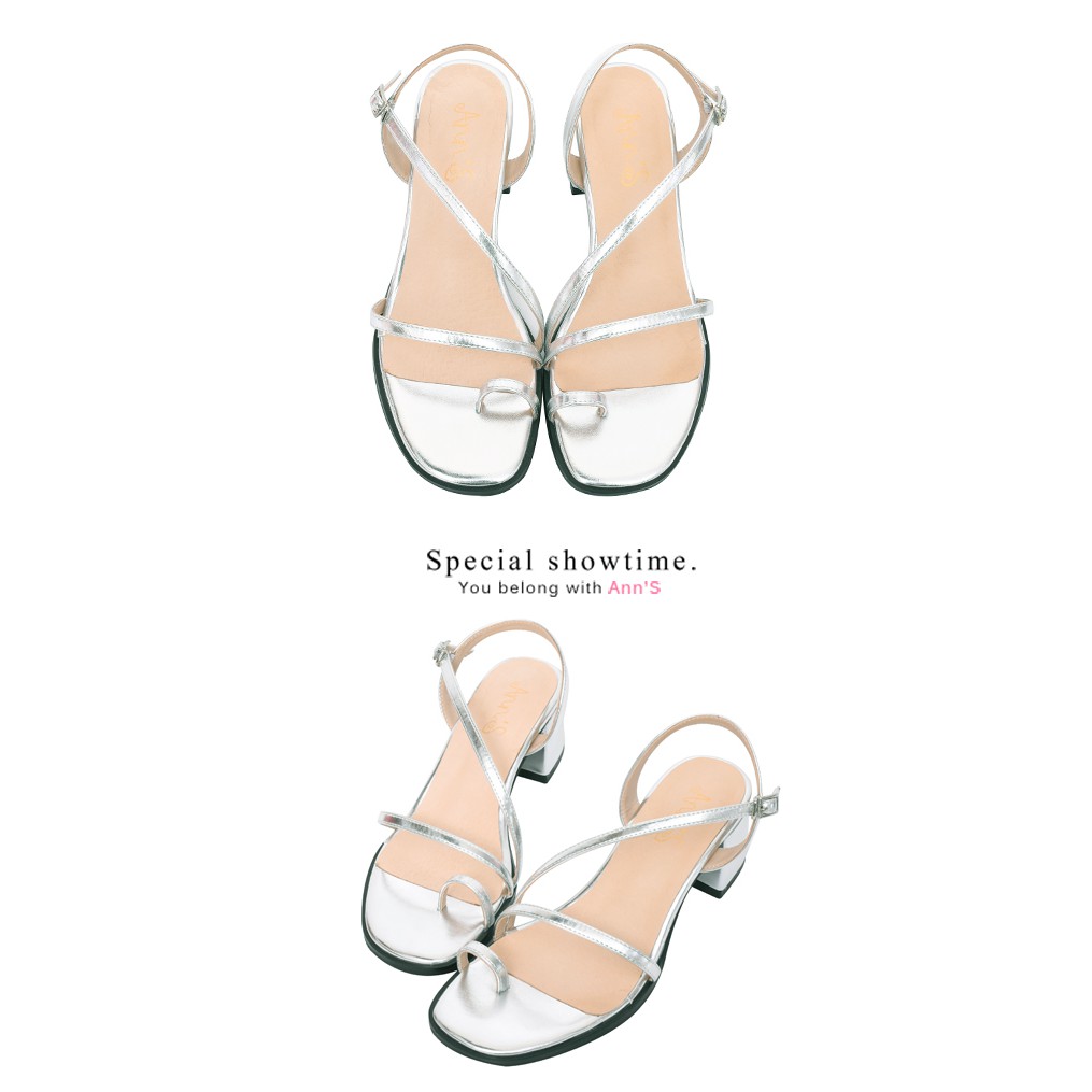 Ann’S怦然時刻-視覺顯瘦斜帶套指方頭粗跟涼鞋5cm-銀