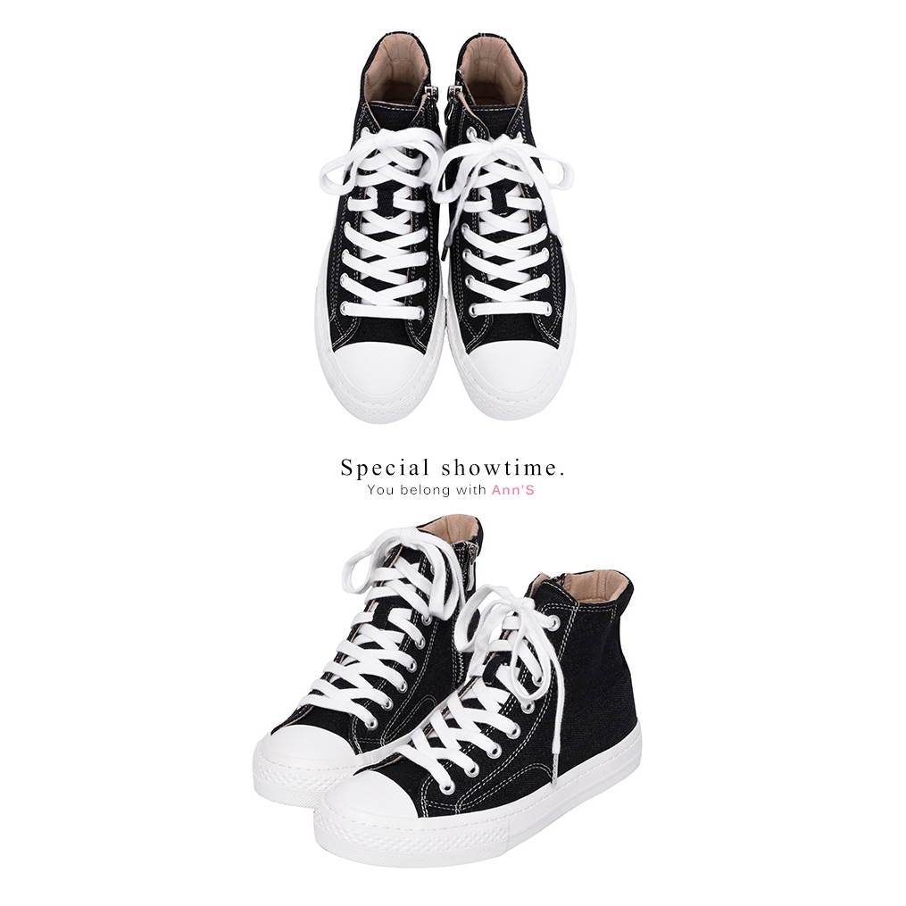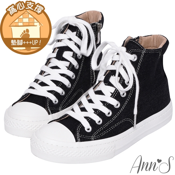 Ann’S黑科技-弄不髒防潑水高筒拉鍊帆布鞋-黑