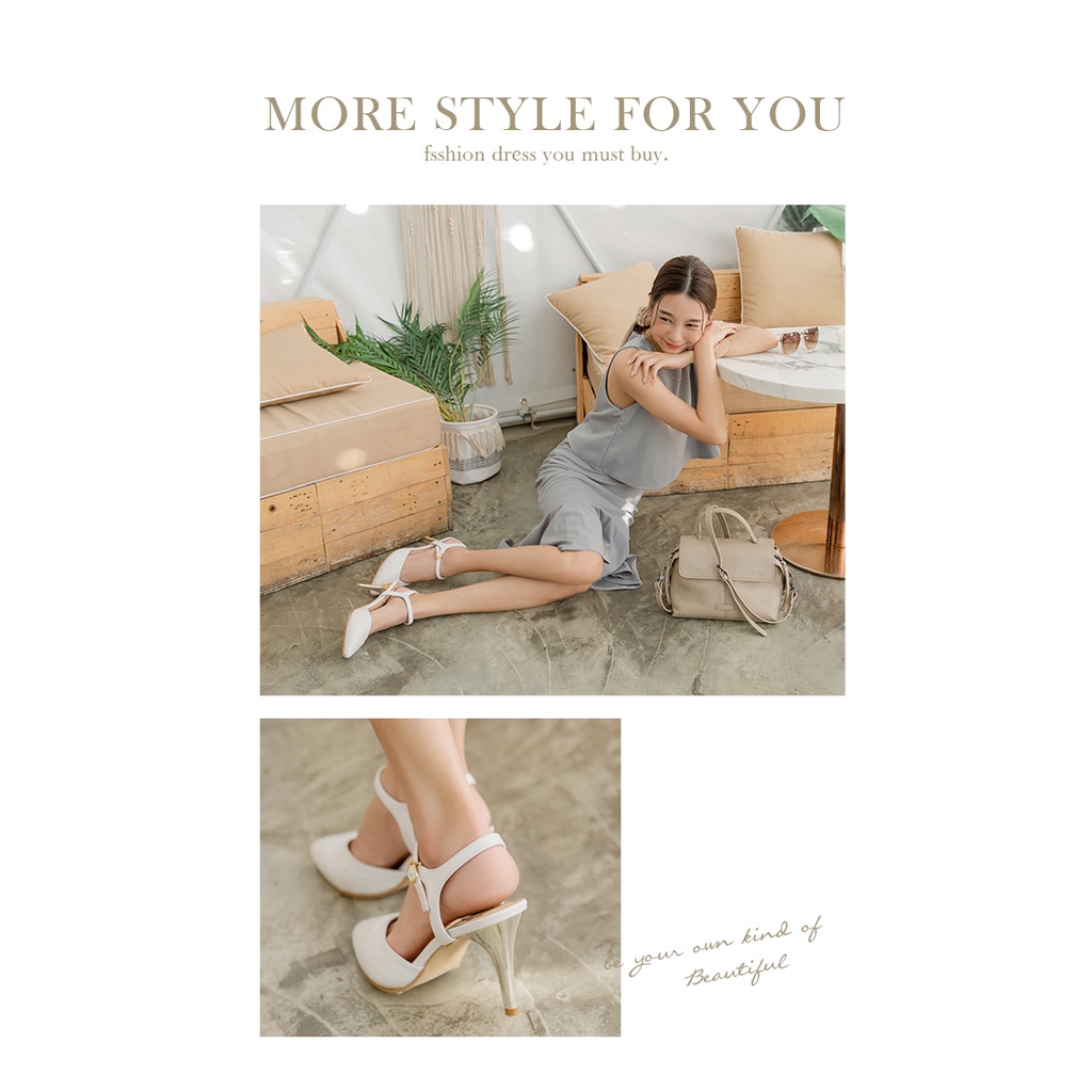 Ann’S訂製仙女鞋-綿羊皮顯瘦V口後拉帶尖頭電鍍直跟鞋7.5cm-白