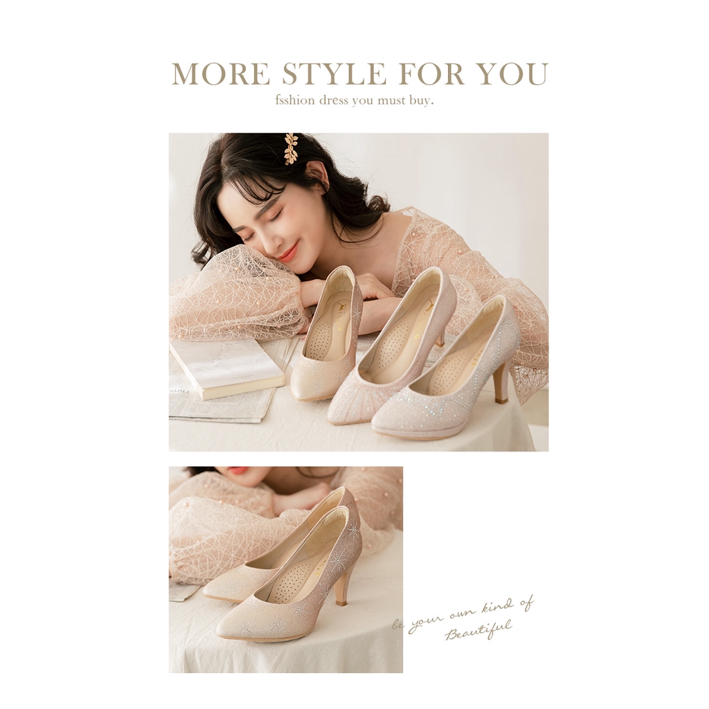 Ann’S艾莎女王-漸層色調冰雪手工燙鑽尖頭婚鞋7.5cm-粉(版型偏小)