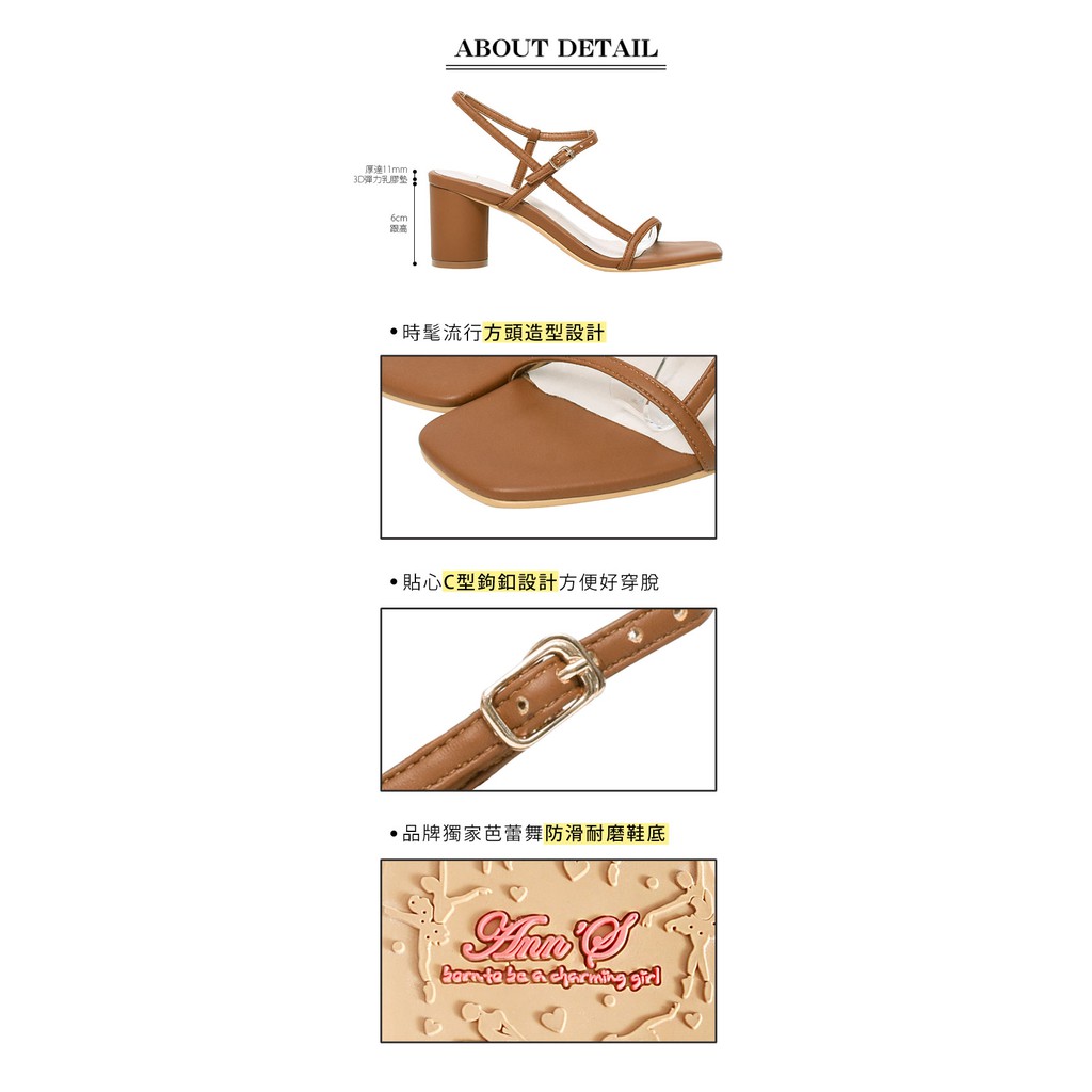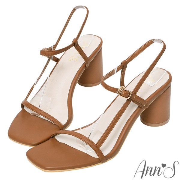 Ann’S氣質品味-側面細帶方頭圓柱粗跟涼鞋6cm-棕