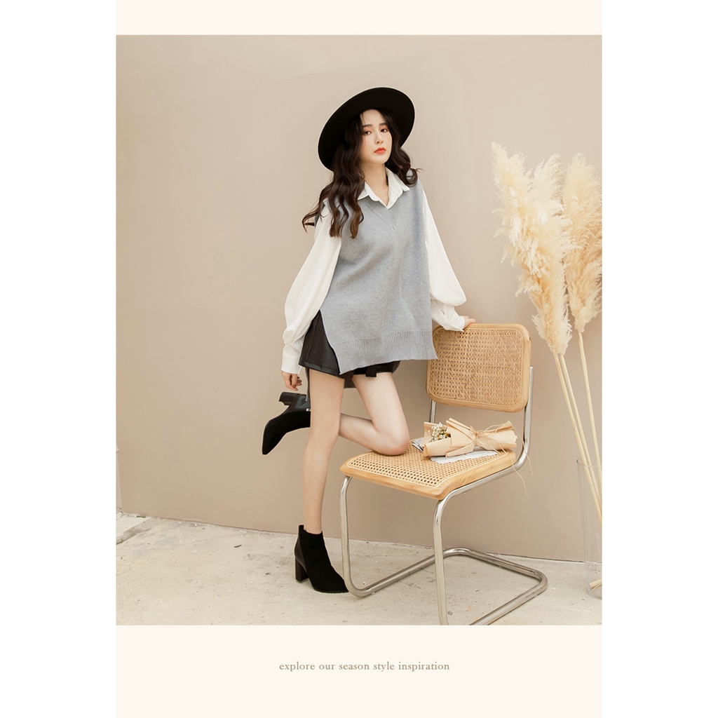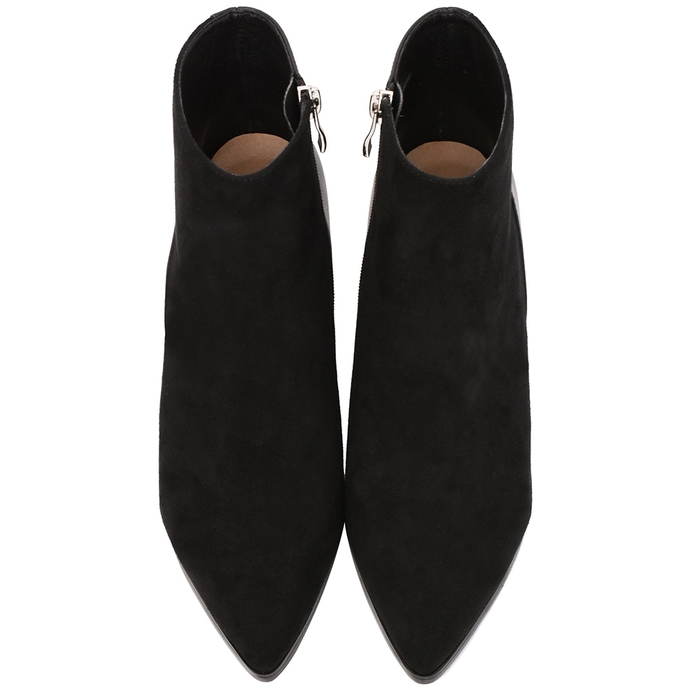 Ann’S俐落節奏-異材質拼接高跟尖頭短靴7.5cm-黑(版型偏小)