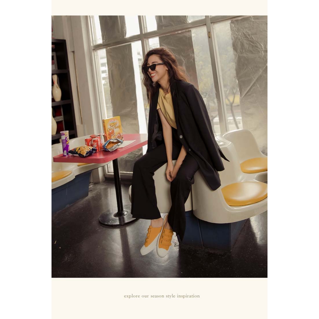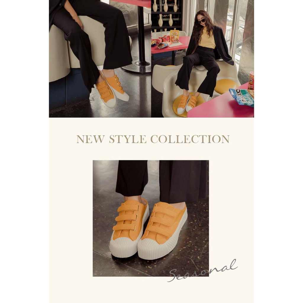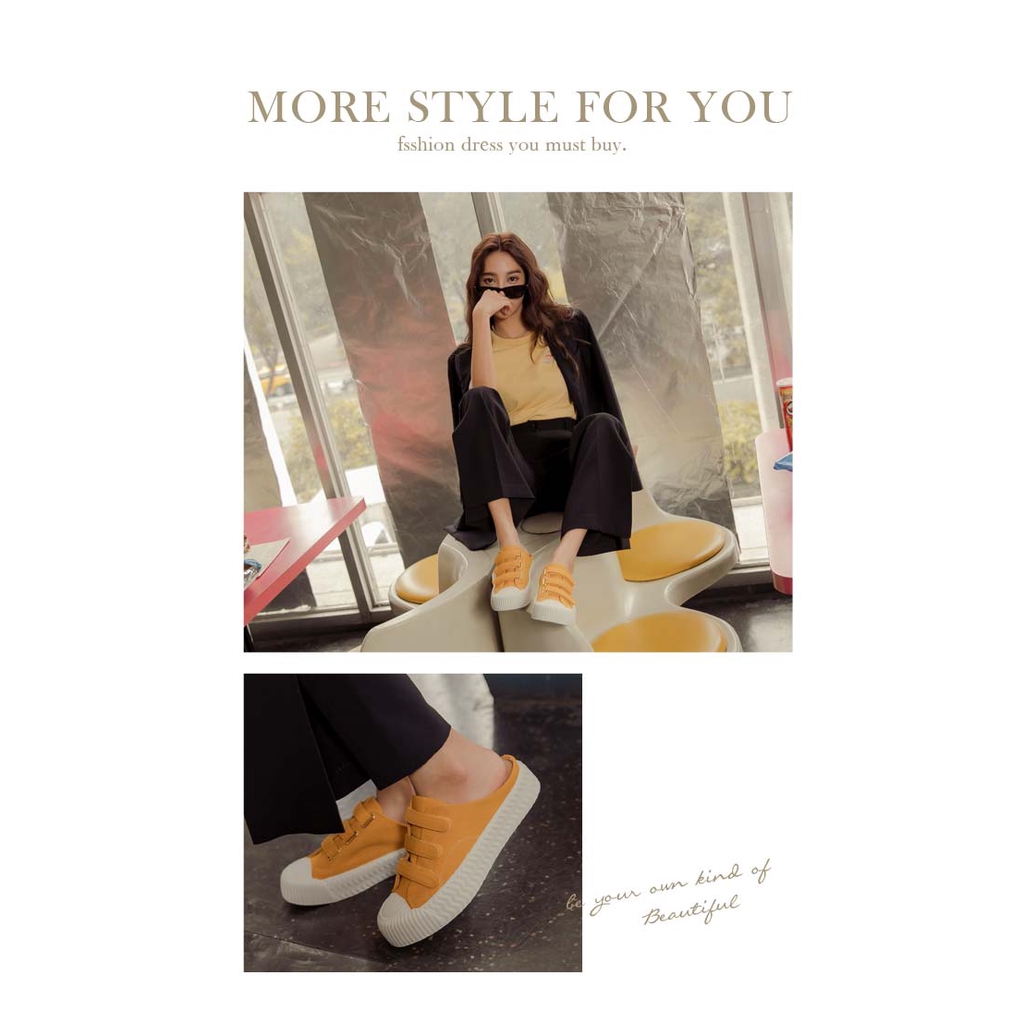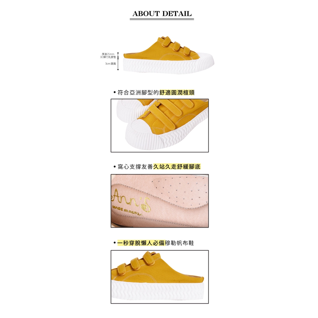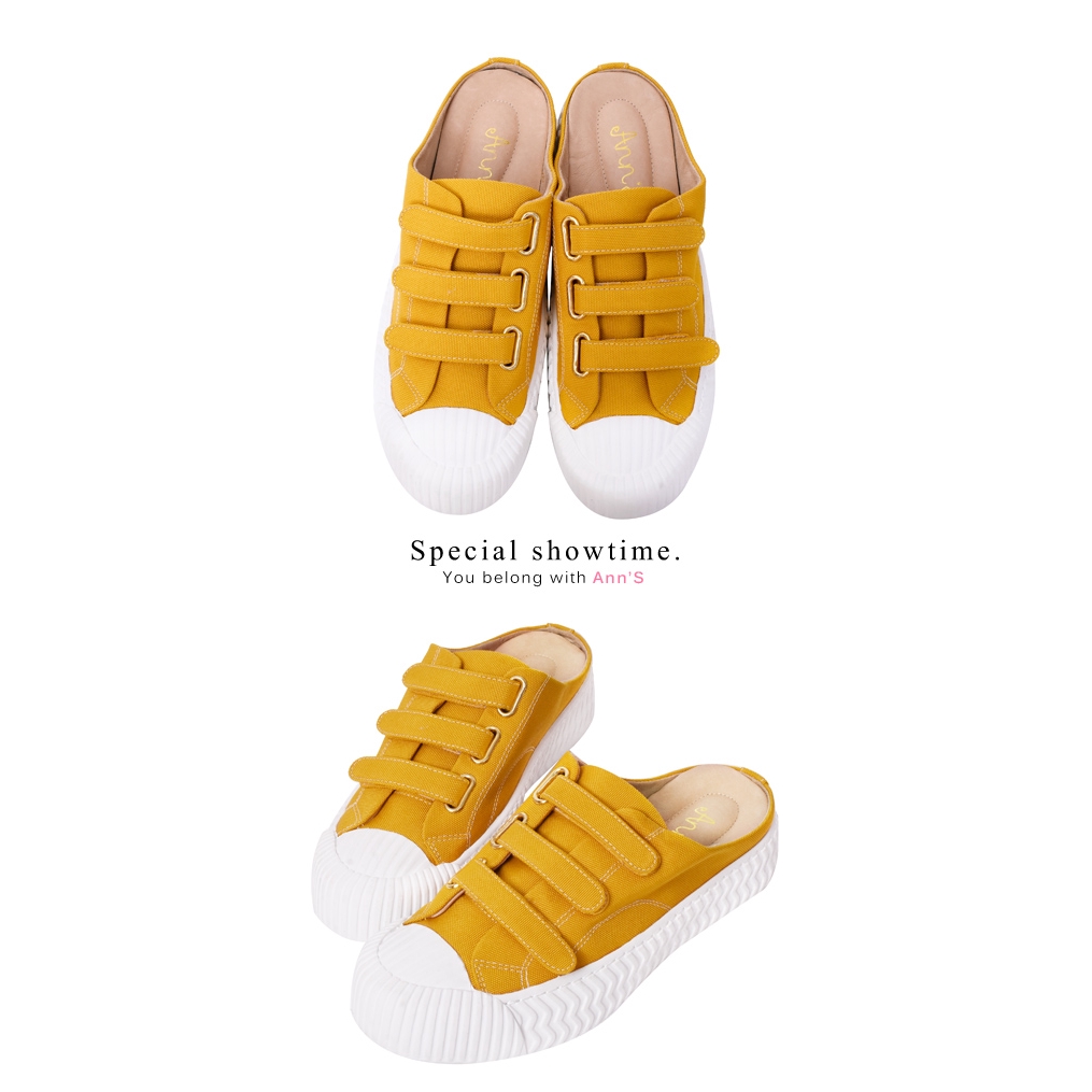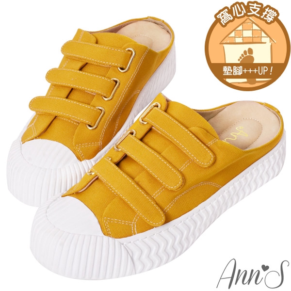 Ann’S黑科技-弄不髒防潑水魔鬼氈帆布餅乾穆勒鞋-黃
