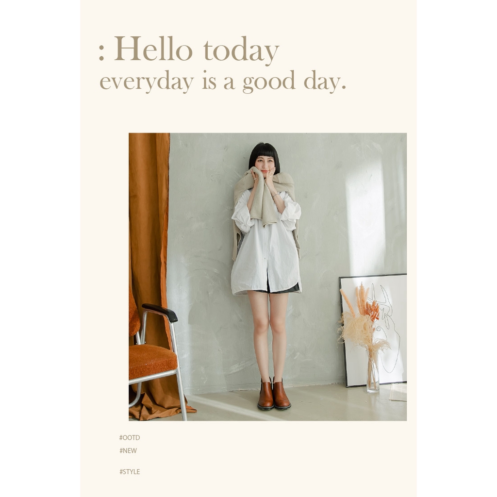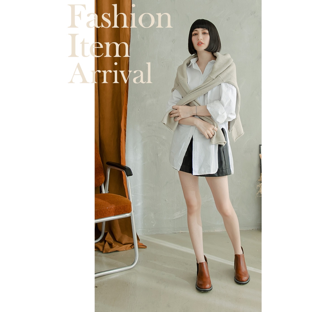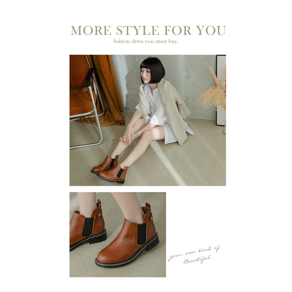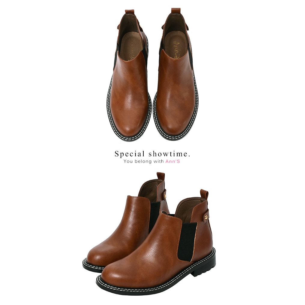 Ann’S時尚街拍-前低顯瘦鬆緊切爾西平底短靴-棕