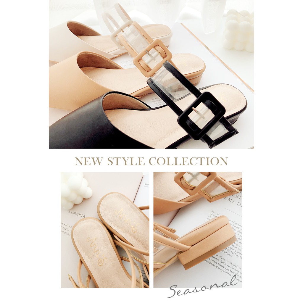 Ann’S方扣軟質透明寬帶尖頭穆勒粗跟鞋2cm-杏(版型偏小)