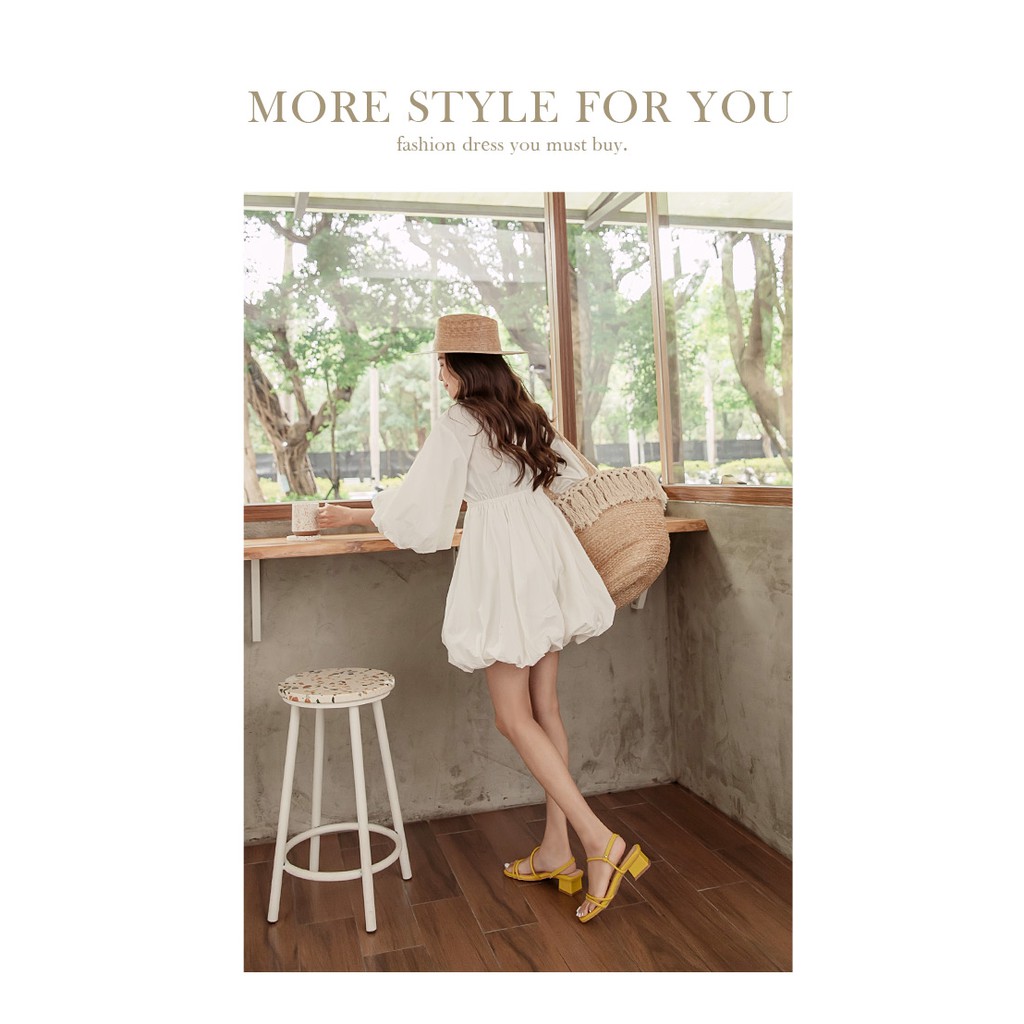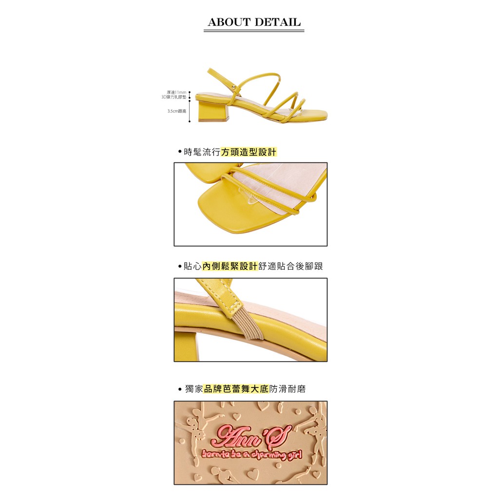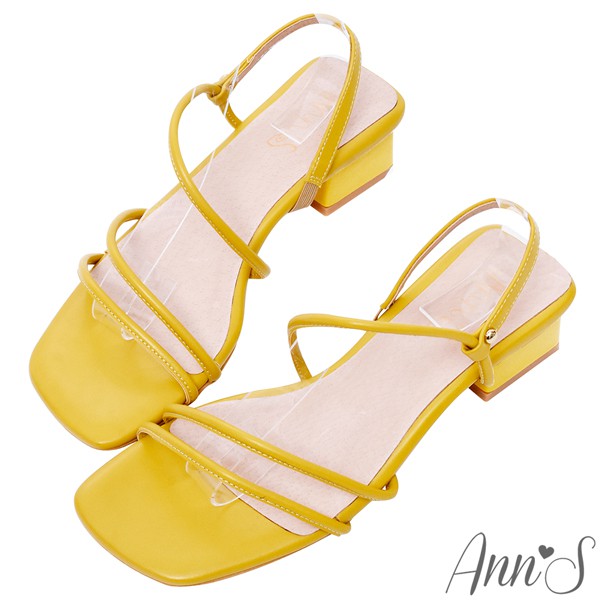 Ann’S舒適圓條顯瘦V曲線方頭粗跟涼鞋3.5cm-黃