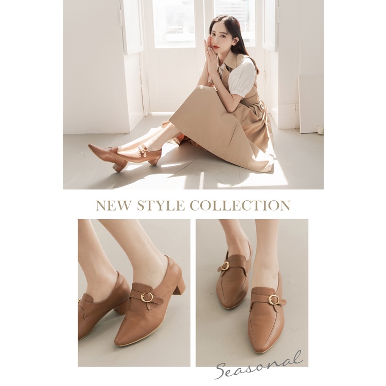Ann’S手工製作頂級綿羊皮氣質金扣低跟踝靴4cm-棕