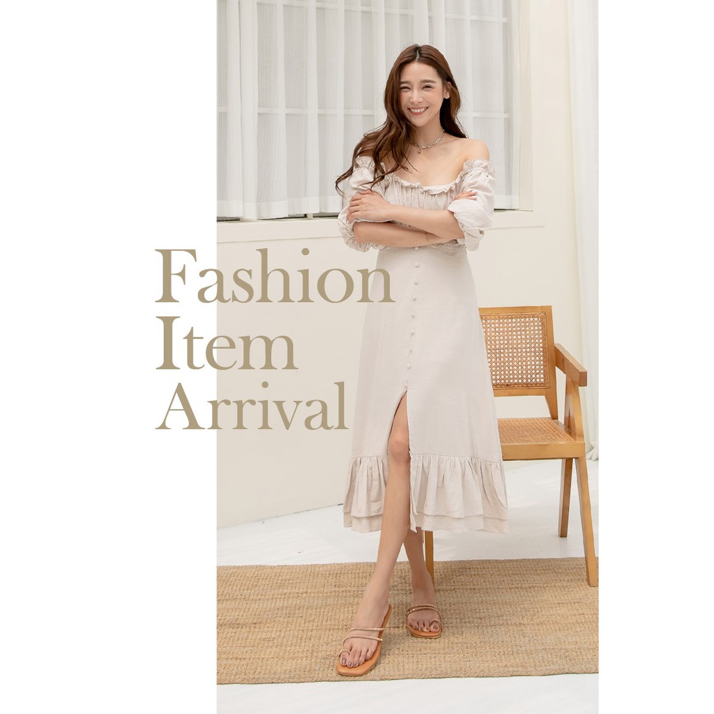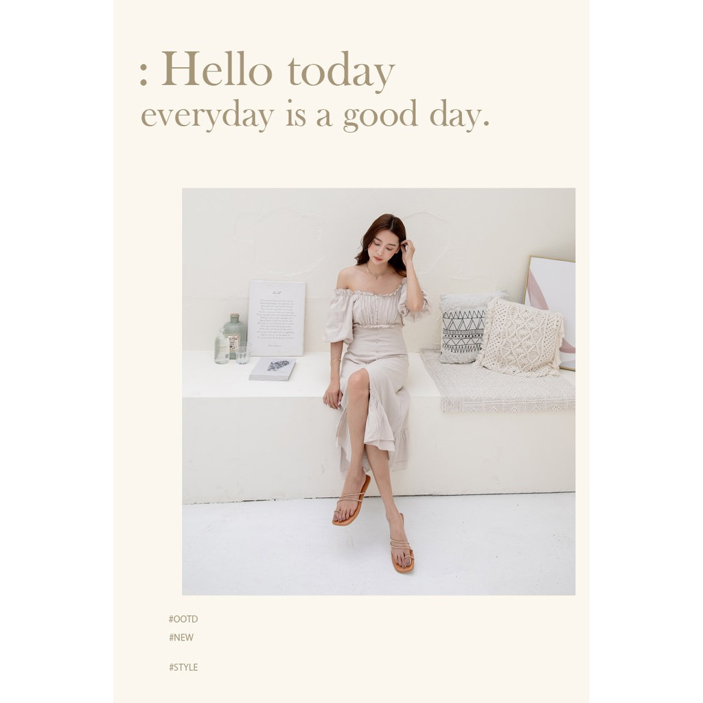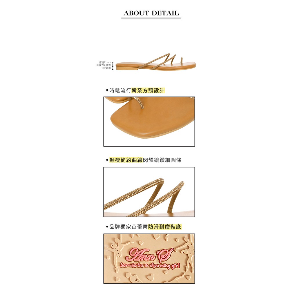 Ann’S細圓條閃耀彩鑽套指方頭平底涼拖鞋-棕