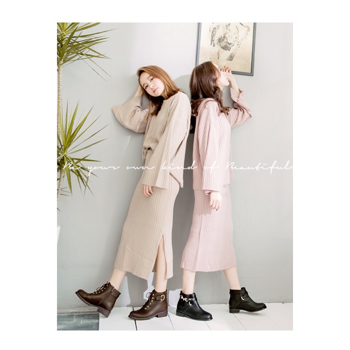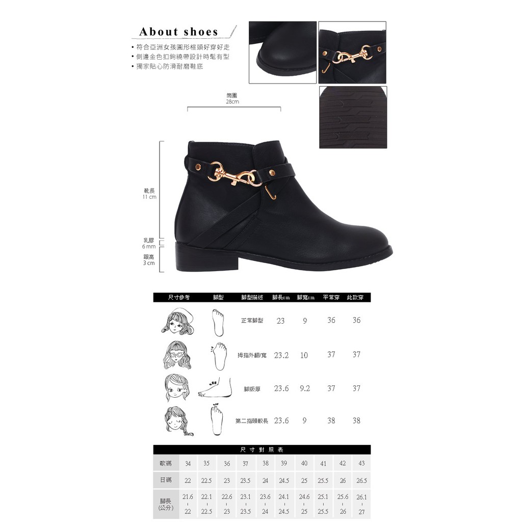 Ann’S美型金色勾釦層次繞帶素面低跟短靴-黑