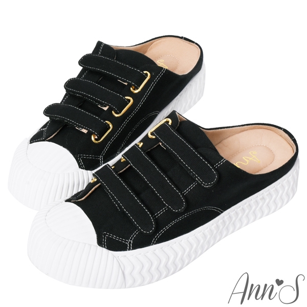 Ann’S黑科技-弄不髒防潑水魔鬼氈帆布餅乾穆勒鞋-黑