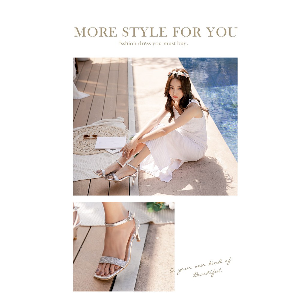 Ann’S最閃打光版-亮片一字帶電鍍細跟涼鞋6cm-銀