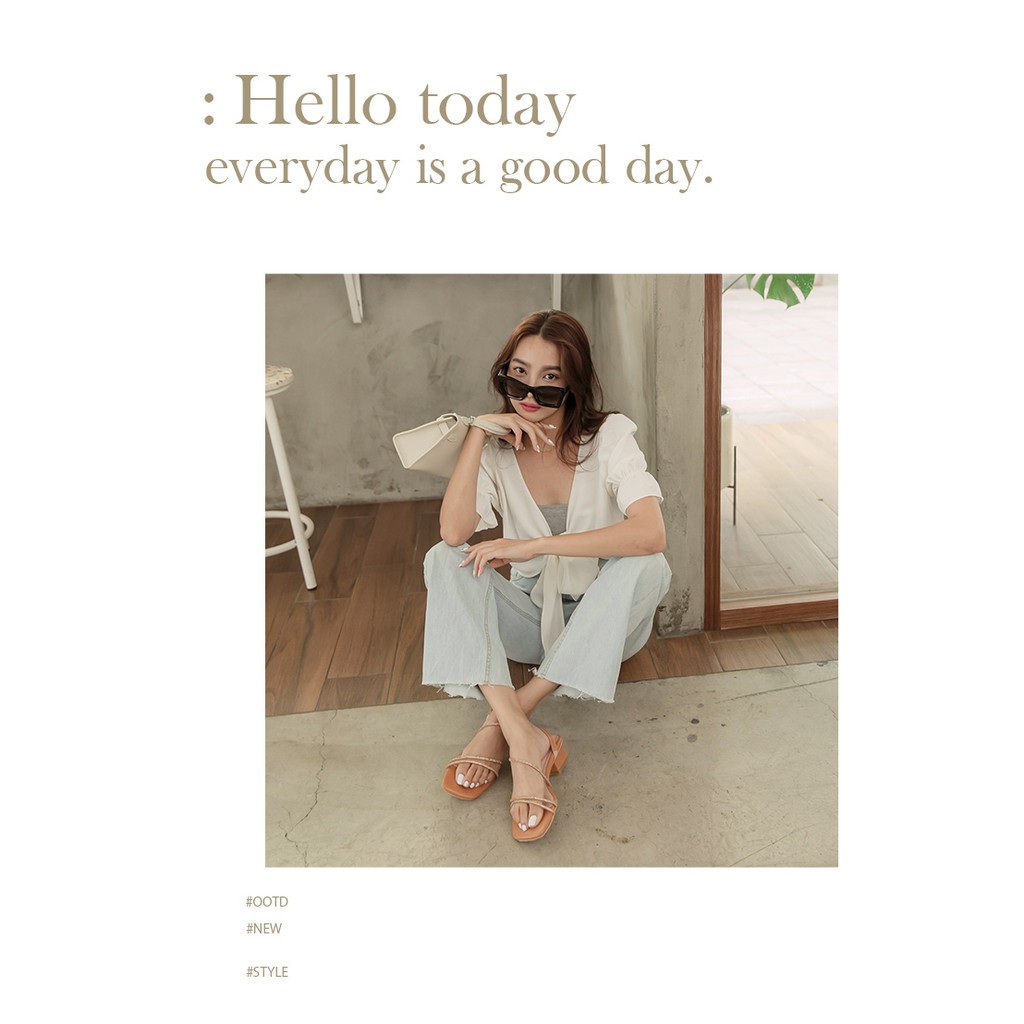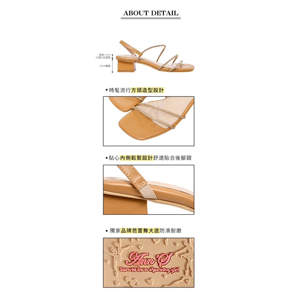 Ann’S舒適圓條顯瘦V曲線方頭粗跟涼鞋3.5cm-棕