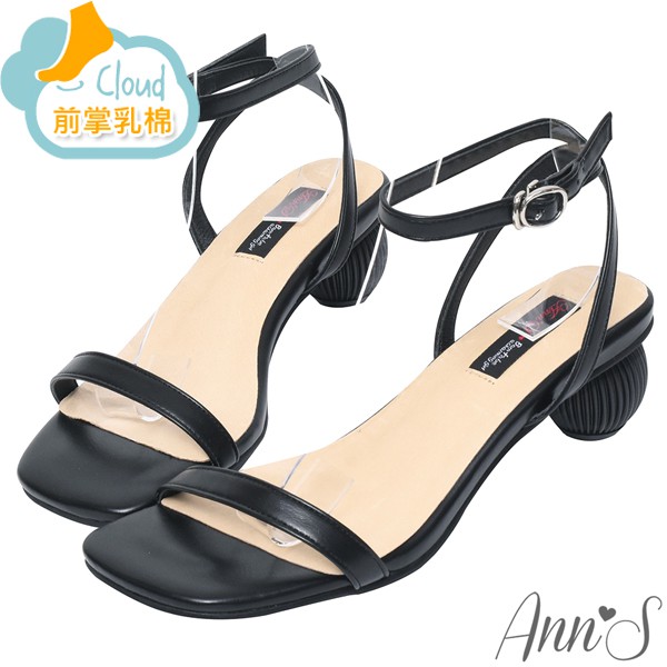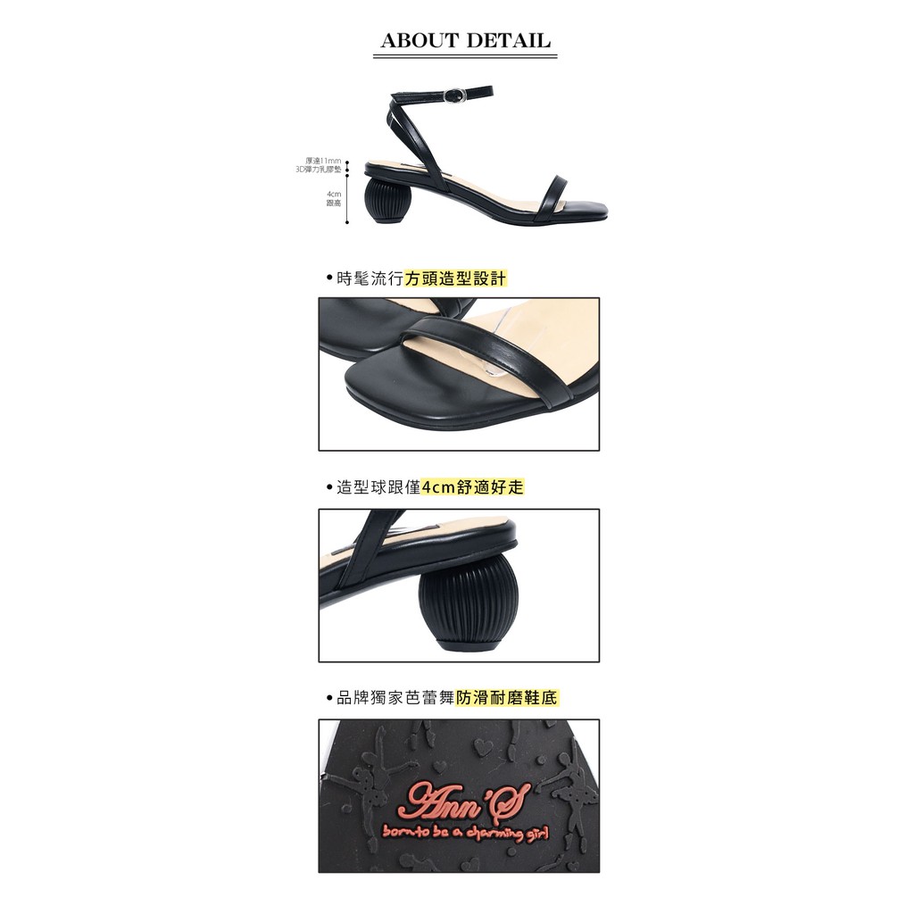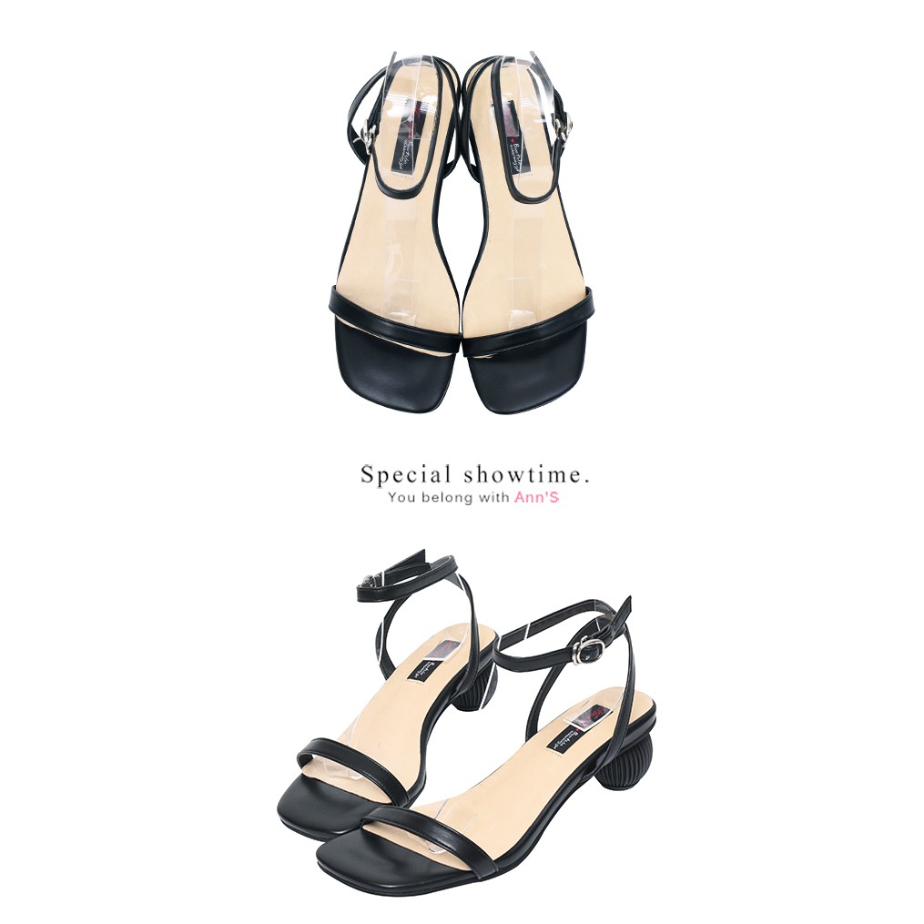 Ann’S解鎖新風格-一字後交叉方頭圓球跟涼鞋4cm-黑