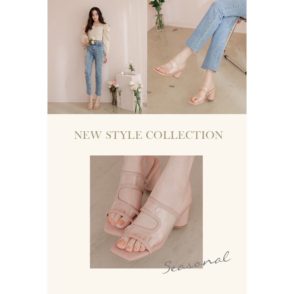 Ann’S彩色小窗口-透明弧線方頭圓粗跟涼拖鞋6cm-粉(版型偏小)