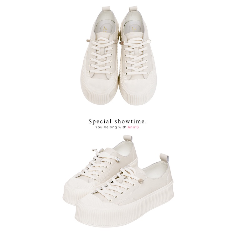 Ann’S免綁鞋帶!全真皮牛皮綁帶厚底餅乾鞋-白