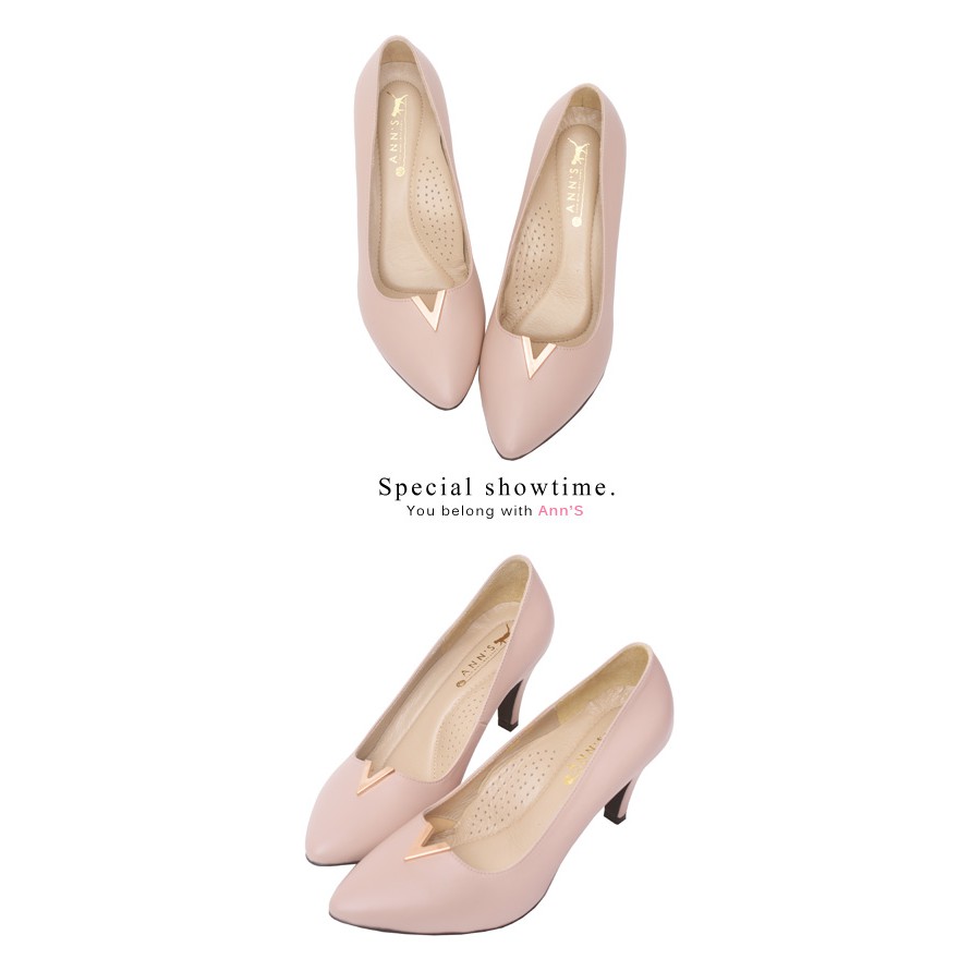 Ann’S職人端莊-頂級小羊皮金屬V口尖頭高跟鞋-粉