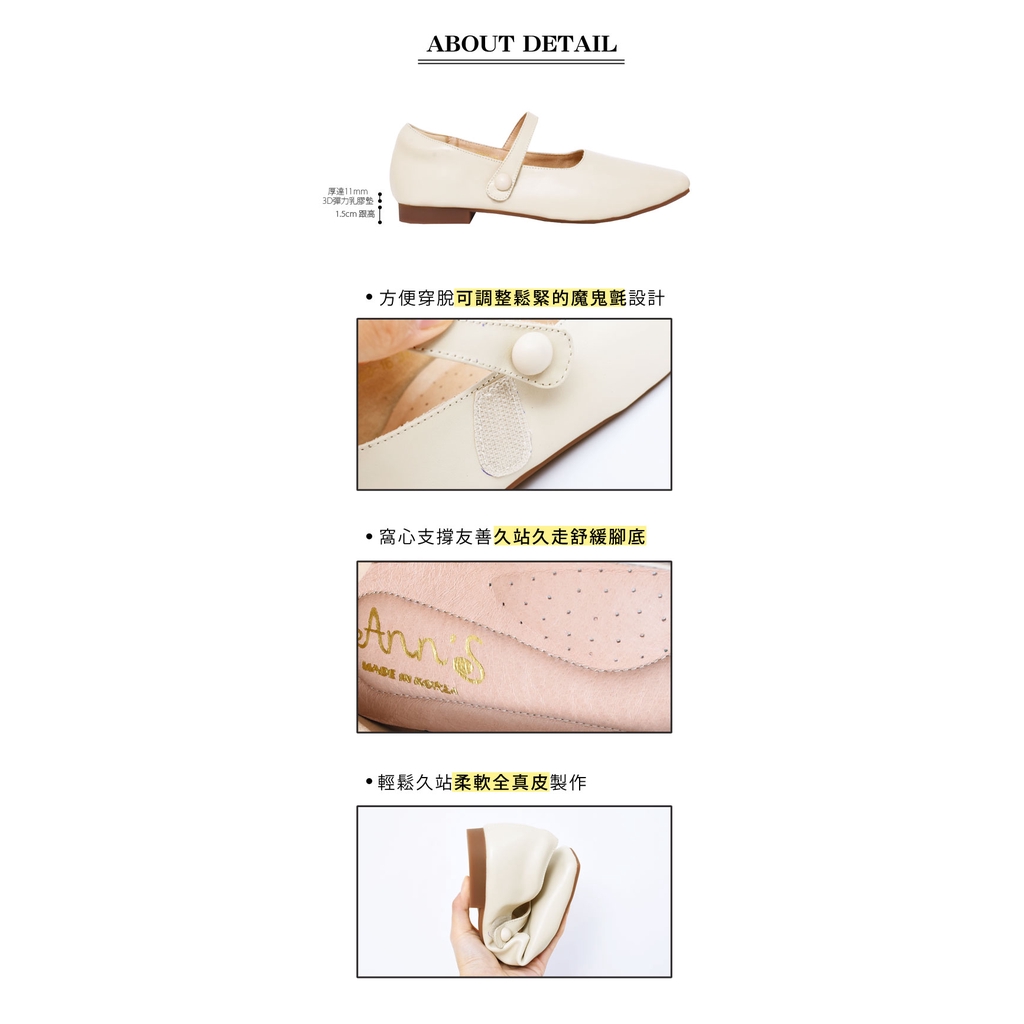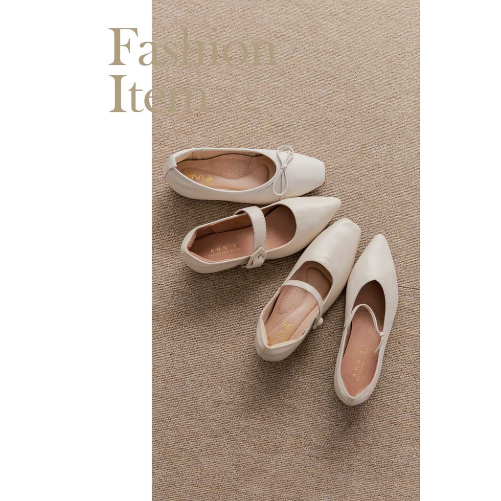 Ann’S平日藝文-瑪莉珍小方頭全真皮平底鞋-米白(版型偏小)