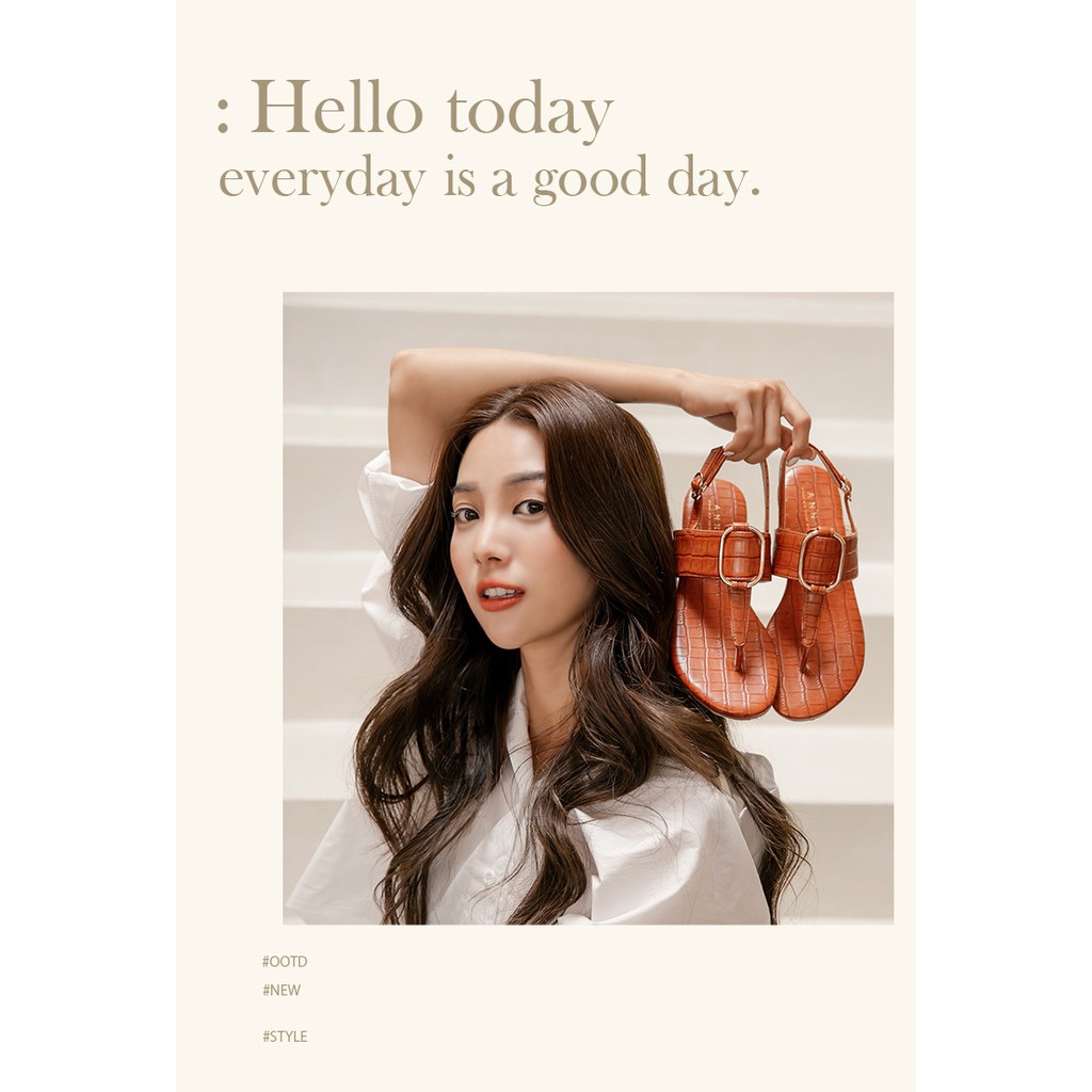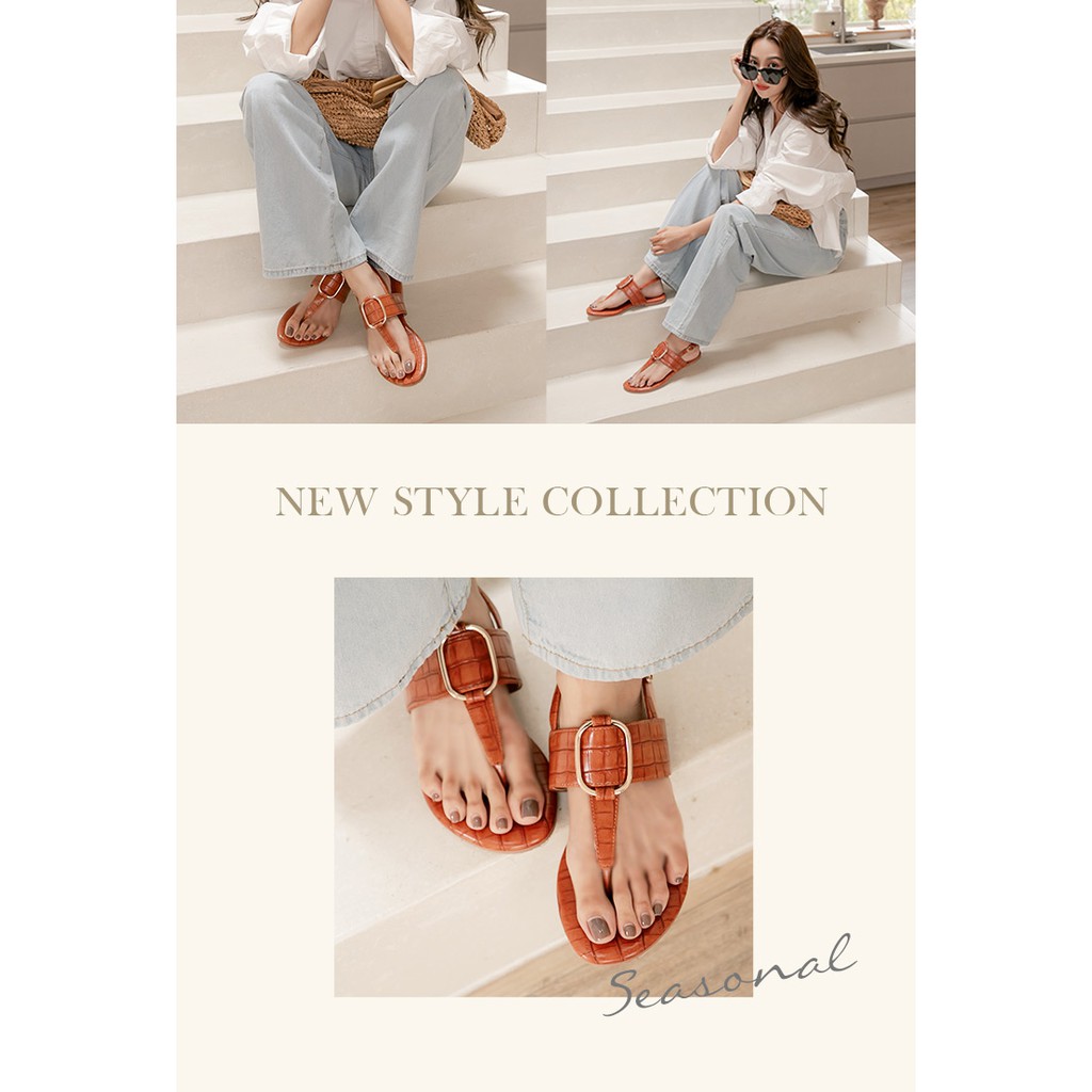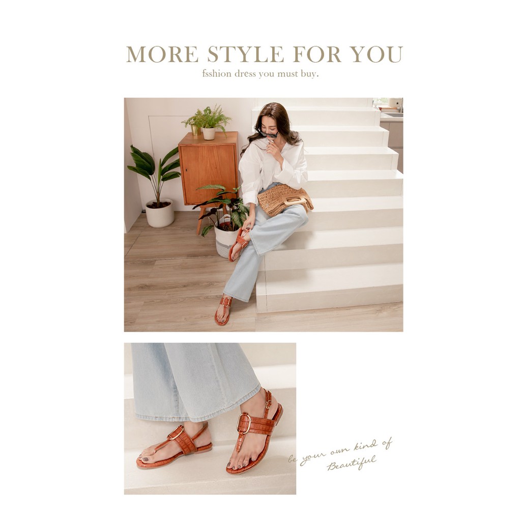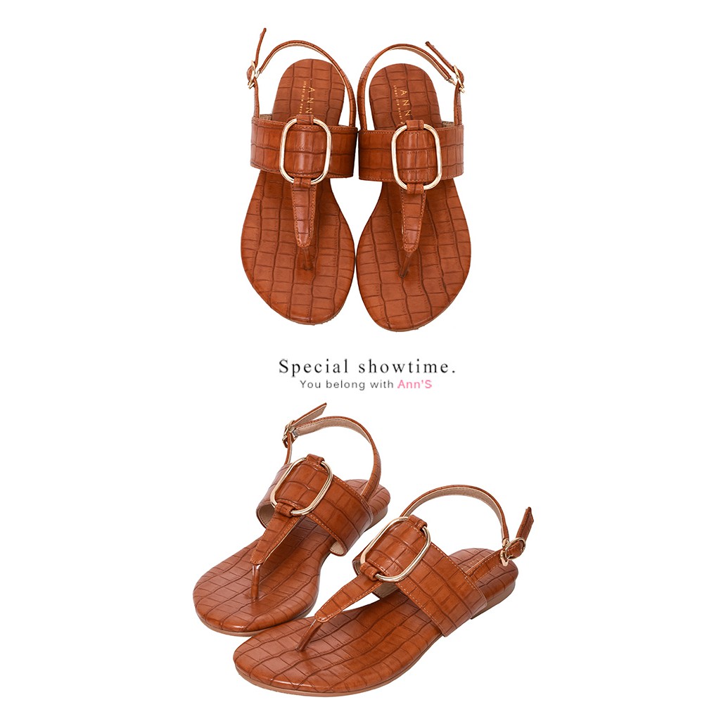 Ann’S石頭紋金環拉帶夾腳平底涼鞋-棕
