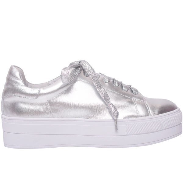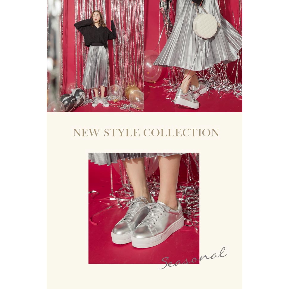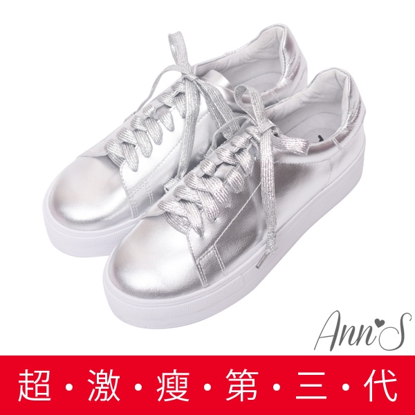 Ann’S激瘦第三代全真牛皮休閒綁帶厚底小白鞋-銀