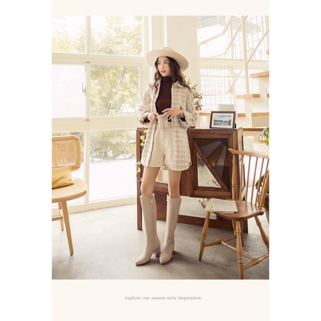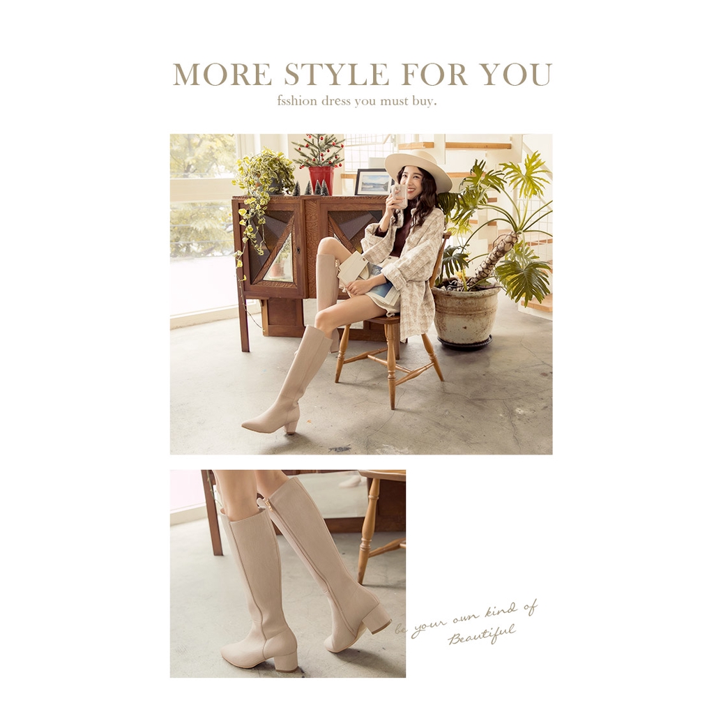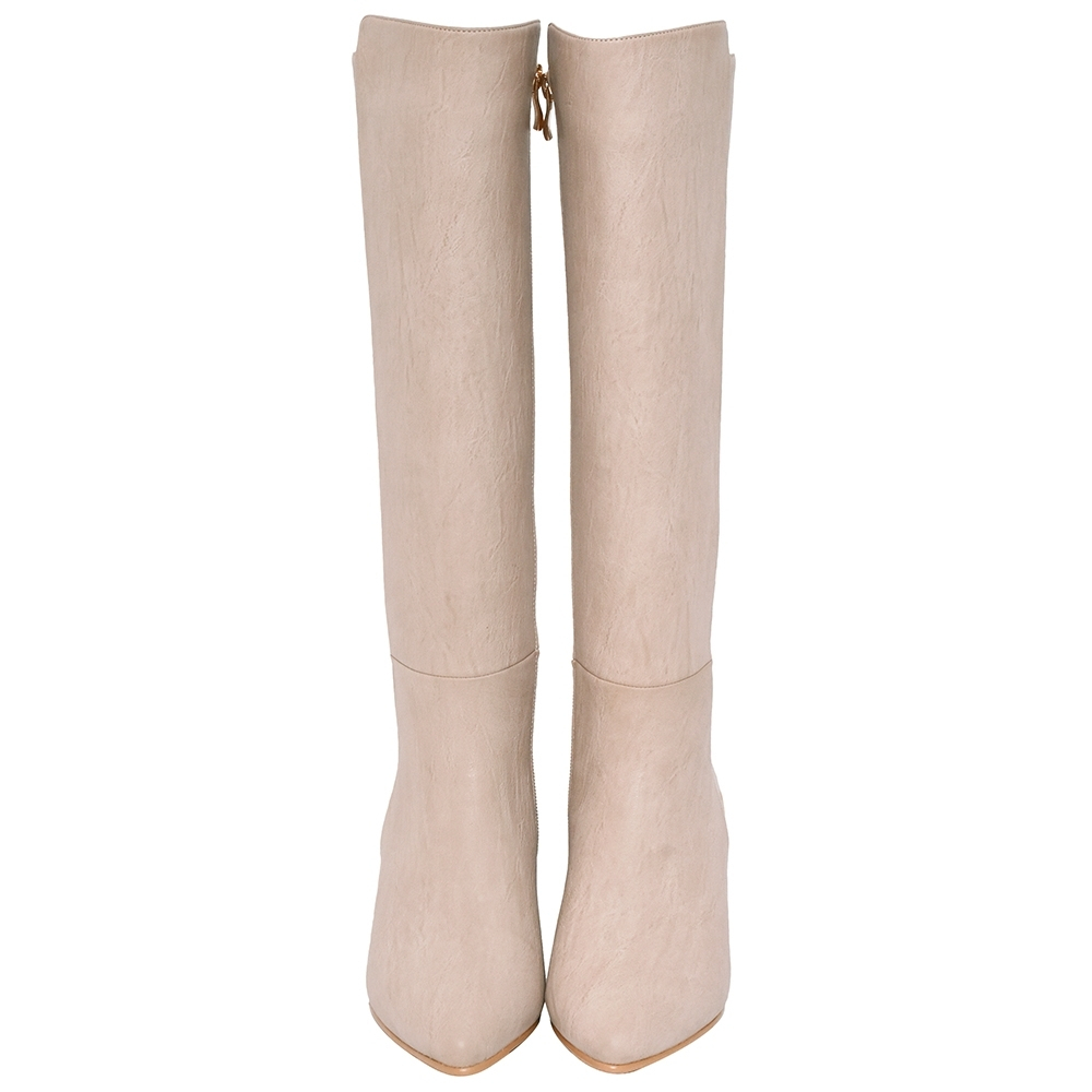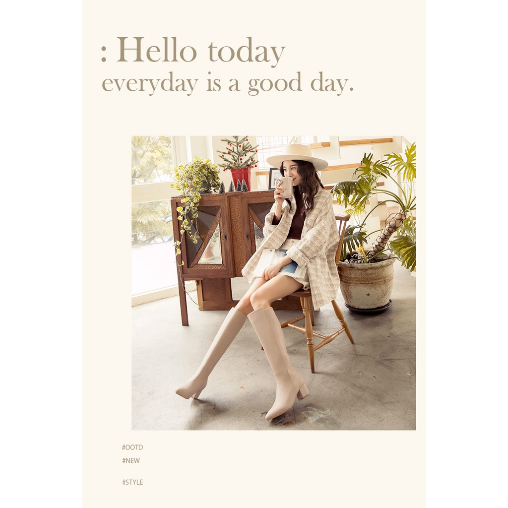 Ann’S返璞經典-復古皮革前高後低粗跟及膝長靴5cm-杏