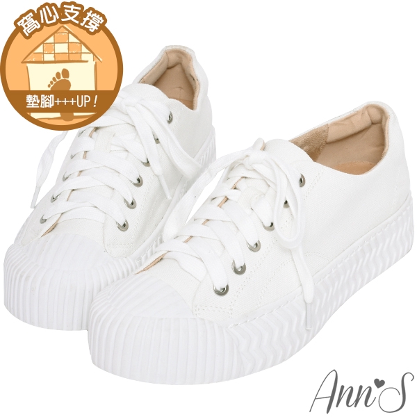 Ann’S黑科技-弄不髒防潑水綁帶帆布餅乾鞋-白