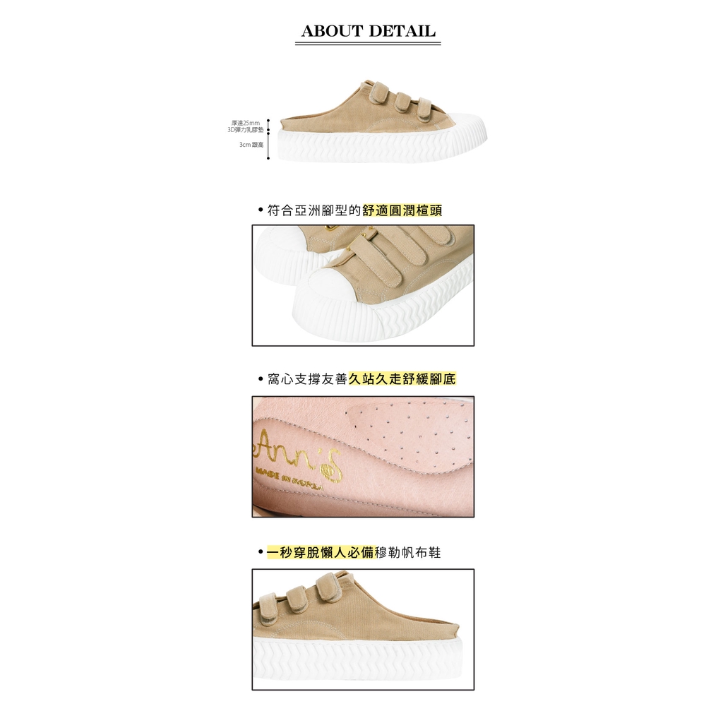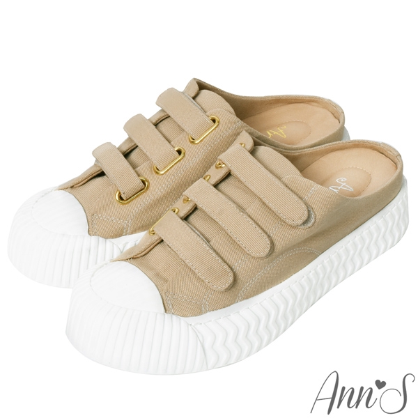 Ann’S黑科技-弄不髒防潑水魔鬼氈帆布餅乾穆勒鞋-奶茶杏