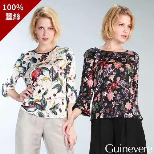 矜蘭妃-100%蠶絲針織印花七分袖上衣