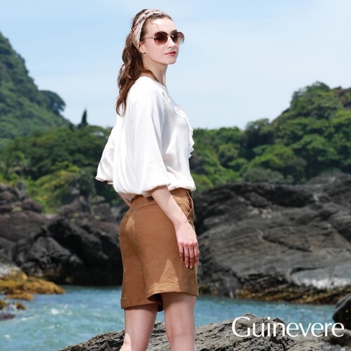 矜蘭妃-100%微蒸氣亞麻避暑修飾神褲1+1