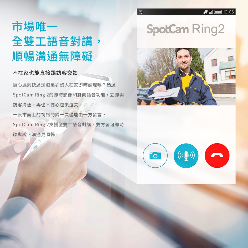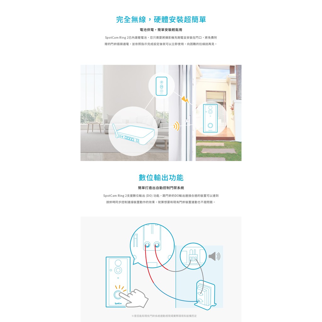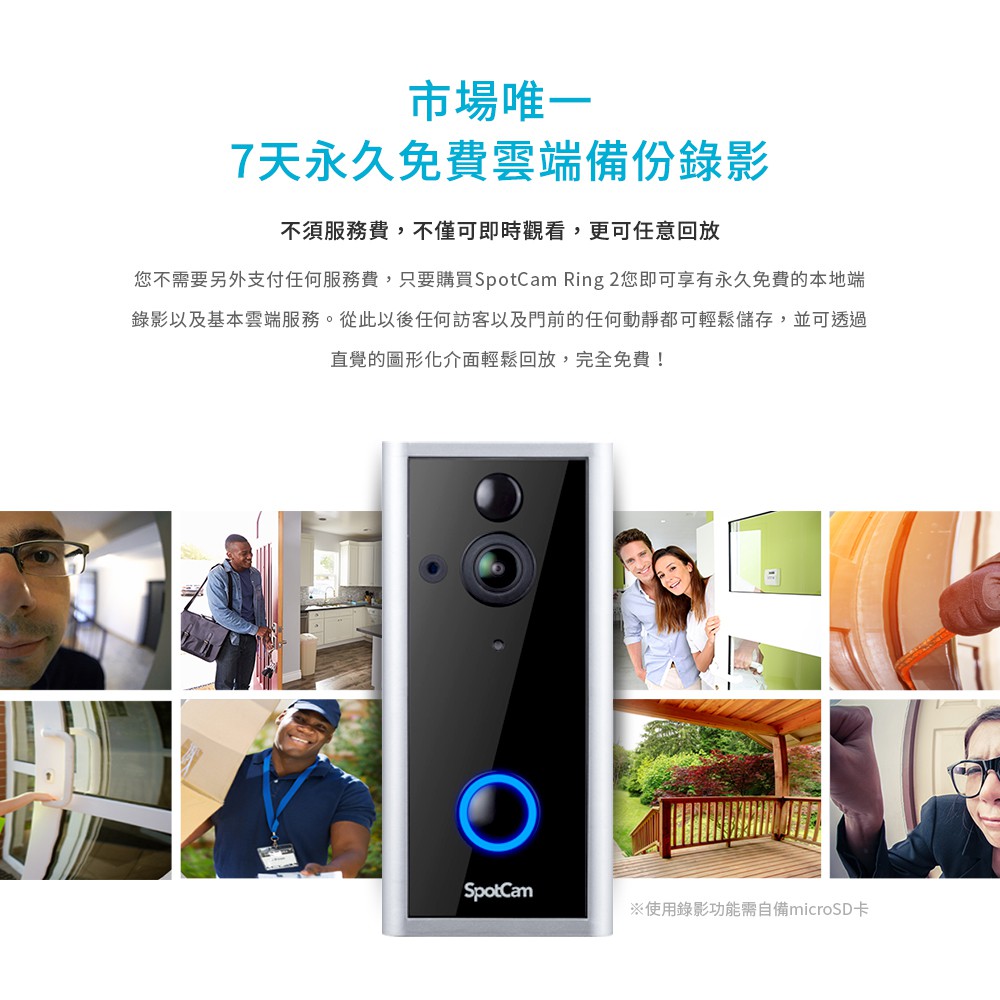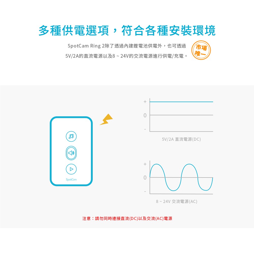 SpotCam Ring 2 智慧門鈴 超廣角180度 遠端監控 動態偵測 免插電 門鈴攝影機 視訊監視器 視訊門鈴