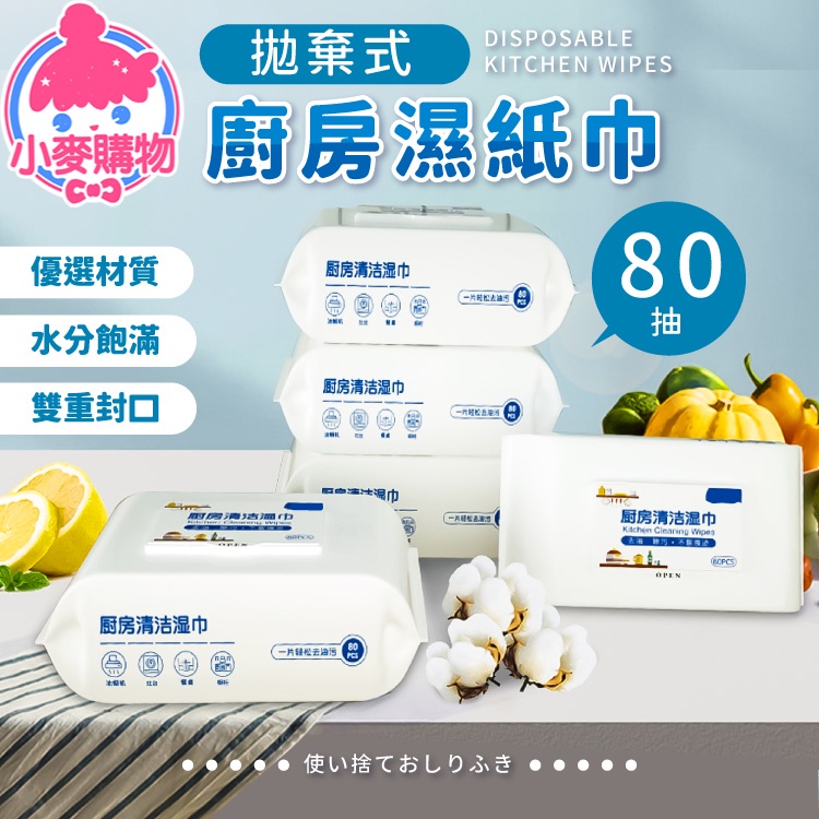 廚房濕紙巾 拋棄式濕紙巾 濕紙巾 80抽 去油污 廚房 居家清潔 抹布 清潔濕巾 一次性 濕巾【小麥購物】【S220】