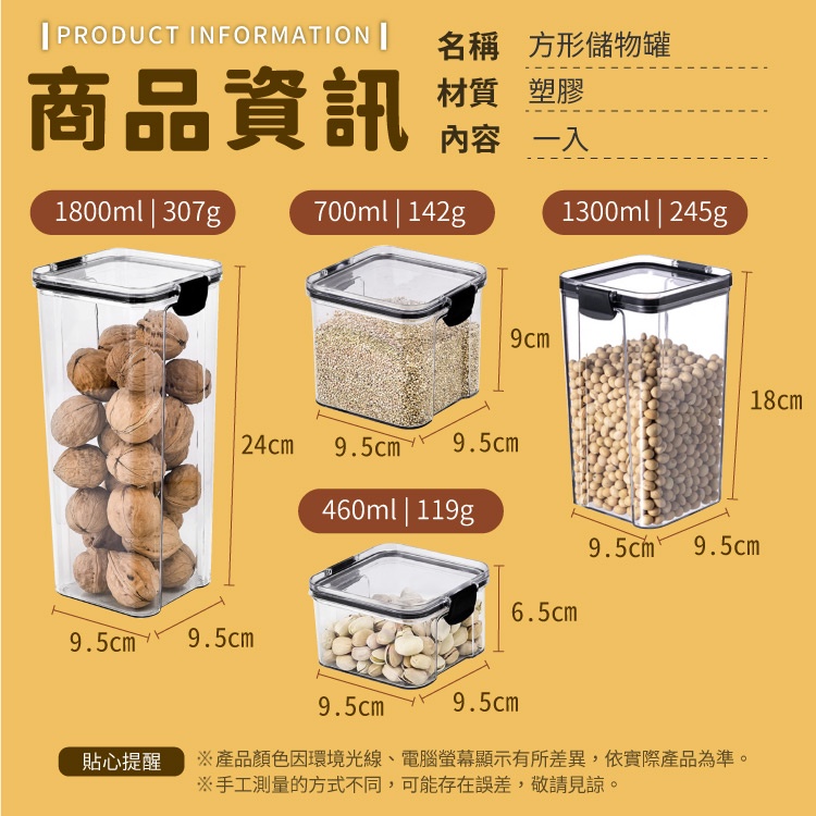 方形儲物罐【小麥購物】【C294】透明保鮮 儲物罐 保鮮罐 保鮮盒 密封罐 密封保鮮 堆疊密封罐 盒|