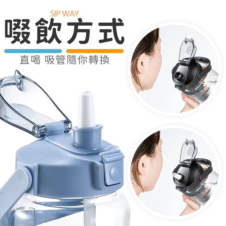 2000ml運動水壺 2公升提把水壺 健身水壺 大容量水壺 吸管水壺 大容量吸管杯 彈蓋水壺【小麥購物】【C222】