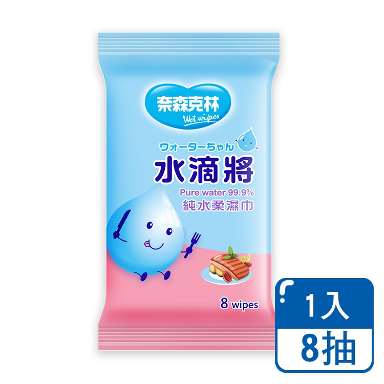 奈森克林 水滴將 純水柔濕巾單包 【小麥購物】【S015】隨身包 8抽 濕巾 濕紙巾 紙巾 柔濕巾