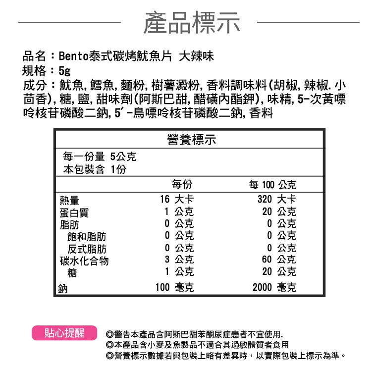 Bento 泰式碳烤魷魚片 5g 大辣味 香辣味 零食 點心 魷魚片 魷魚絲 魷魚捲 香魷片 【小麥購物】【A148】