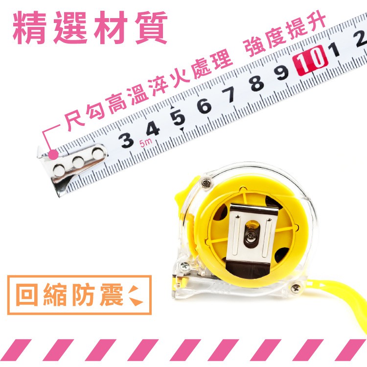 加厚透明鋼捲尺 捲尺 鋼捲尺 施工 鋼尺 DIY 測量 木工 尺 5公尺 鐵尺 皮尺 工程捲尺【小麥購物】【Y681】