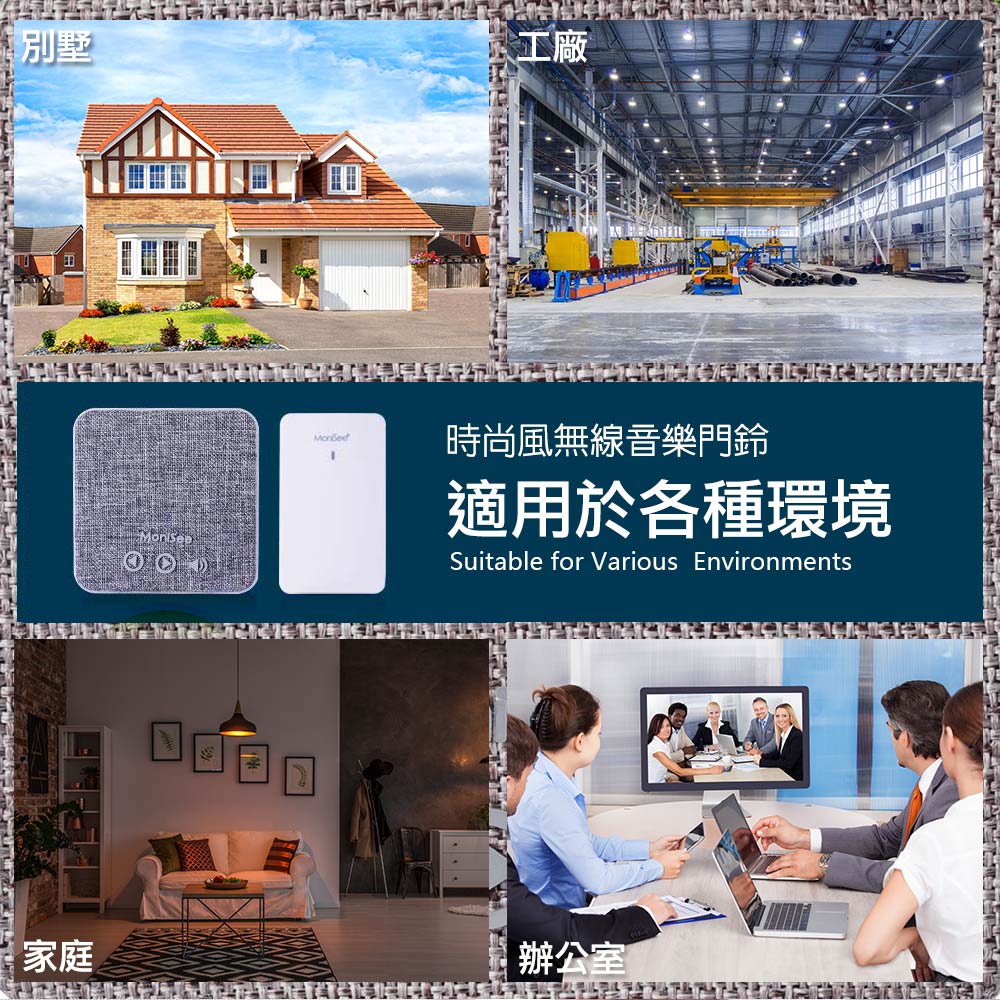 【MoniSee 莫尼希】簡約時尚自發電無線門鈴-灰色(套組/一對一) 辦公室門鈴/居家門鈴/音樂門鈴