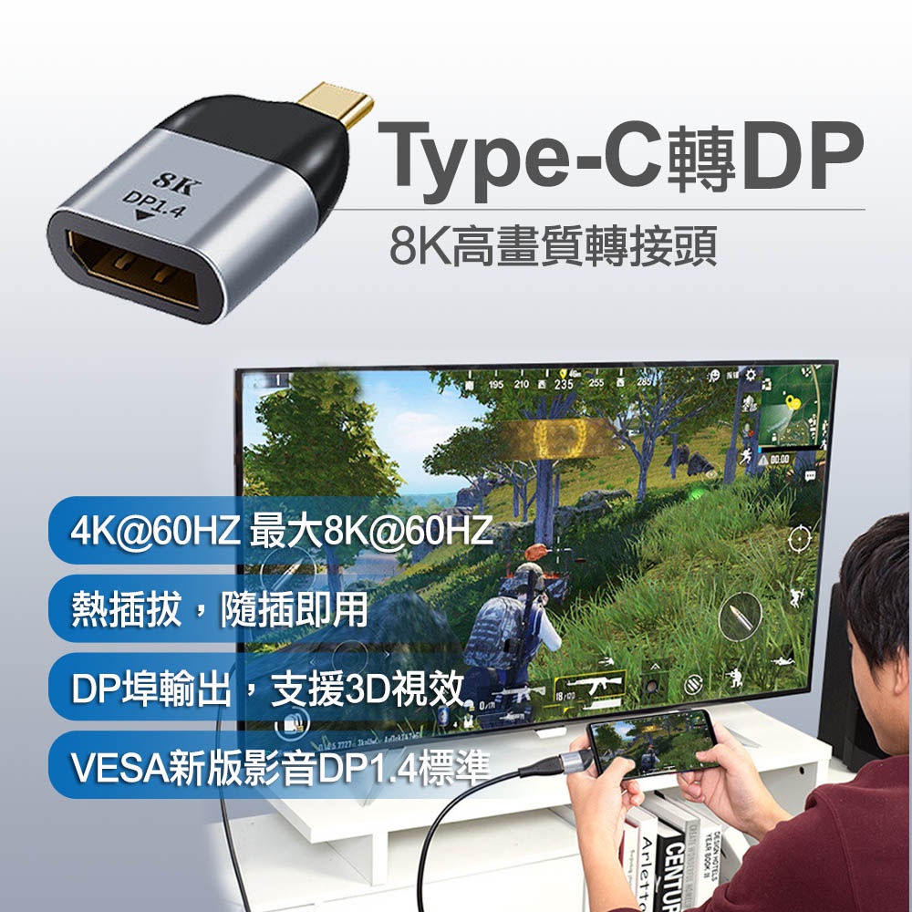 【atake】Type-C轉DP 8K高畫質轉接頭 TYPEC轉DP 轉接頭 高畫質轉接頭 螢幕轉接頭