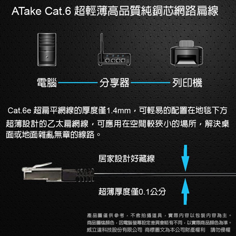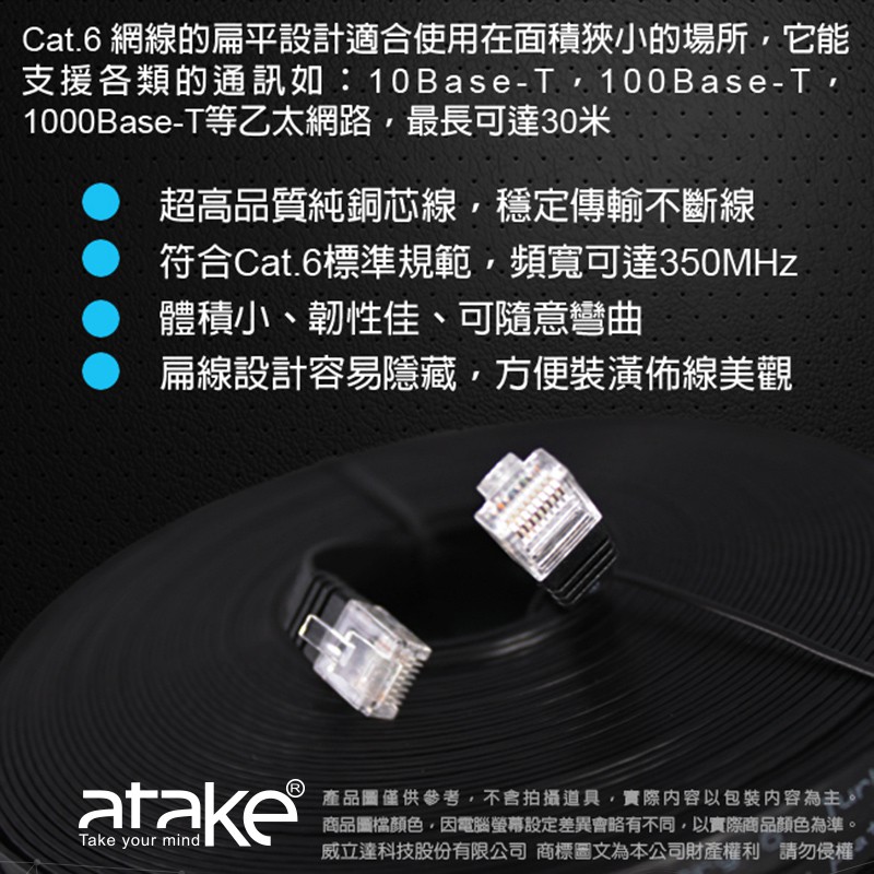 【atake】CAT6高速網路線(1m/2m/3m/5m/8m) 電腦線/超薄扁線/RJ45/網路線