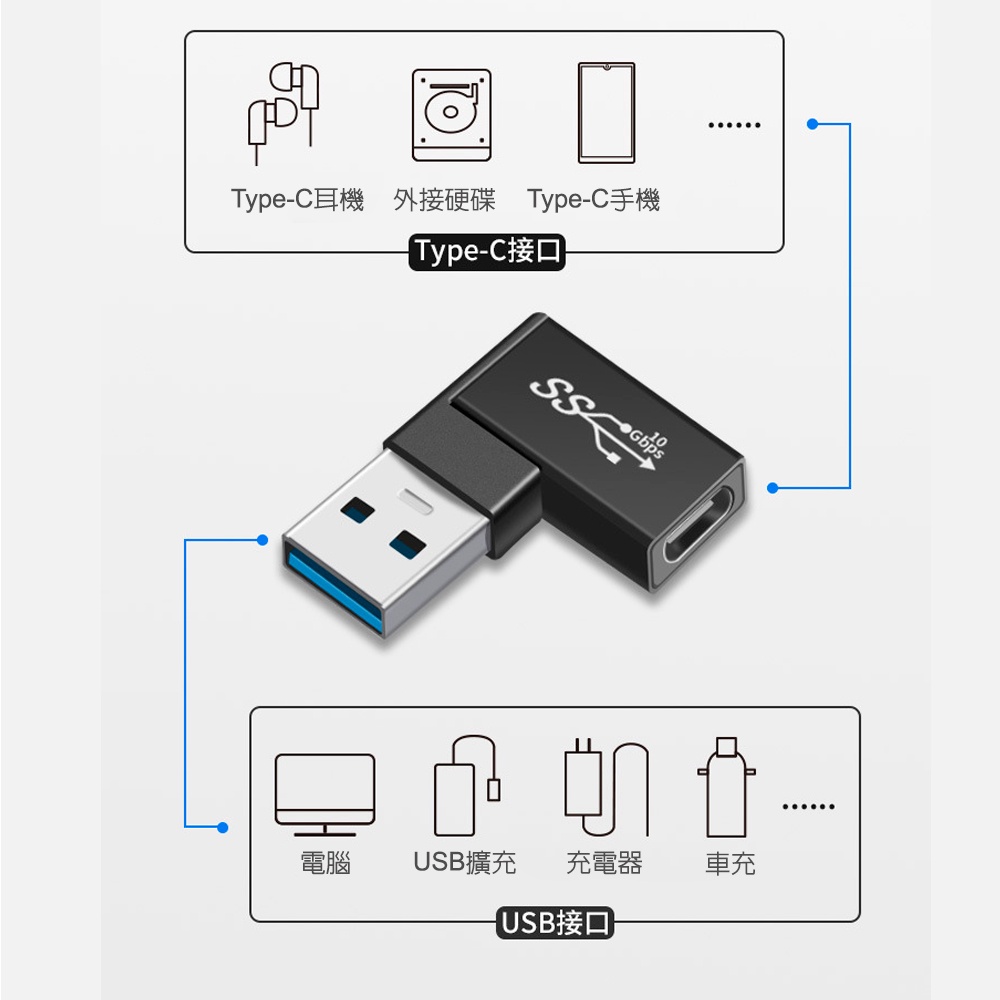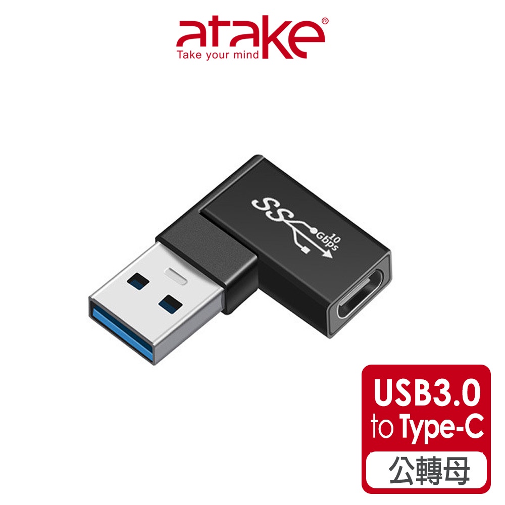 【atake】USB3.0轉Type-C轉接頭 (公對母/90度彎角/5Gbps/充電/傳輸/PD轉接頭)