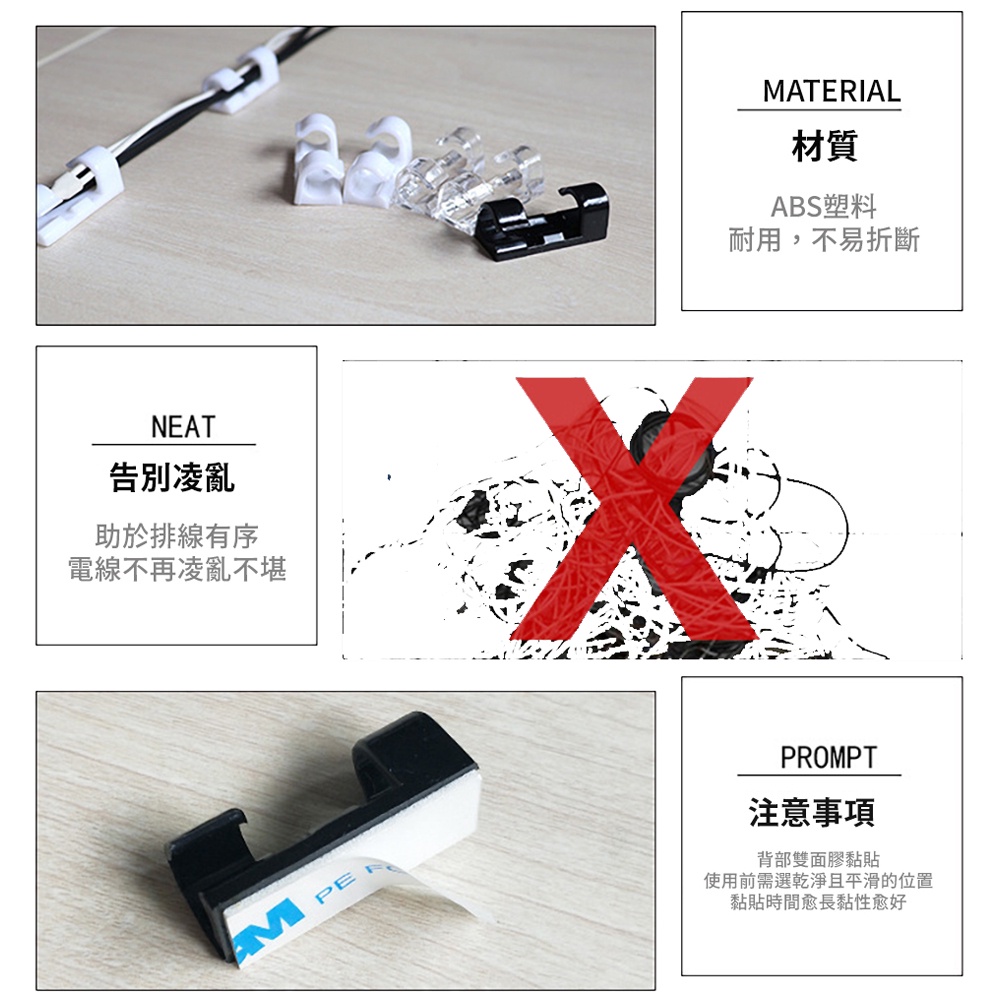 【atake】自黏式線材固定器(50入/黑/透明/白)
