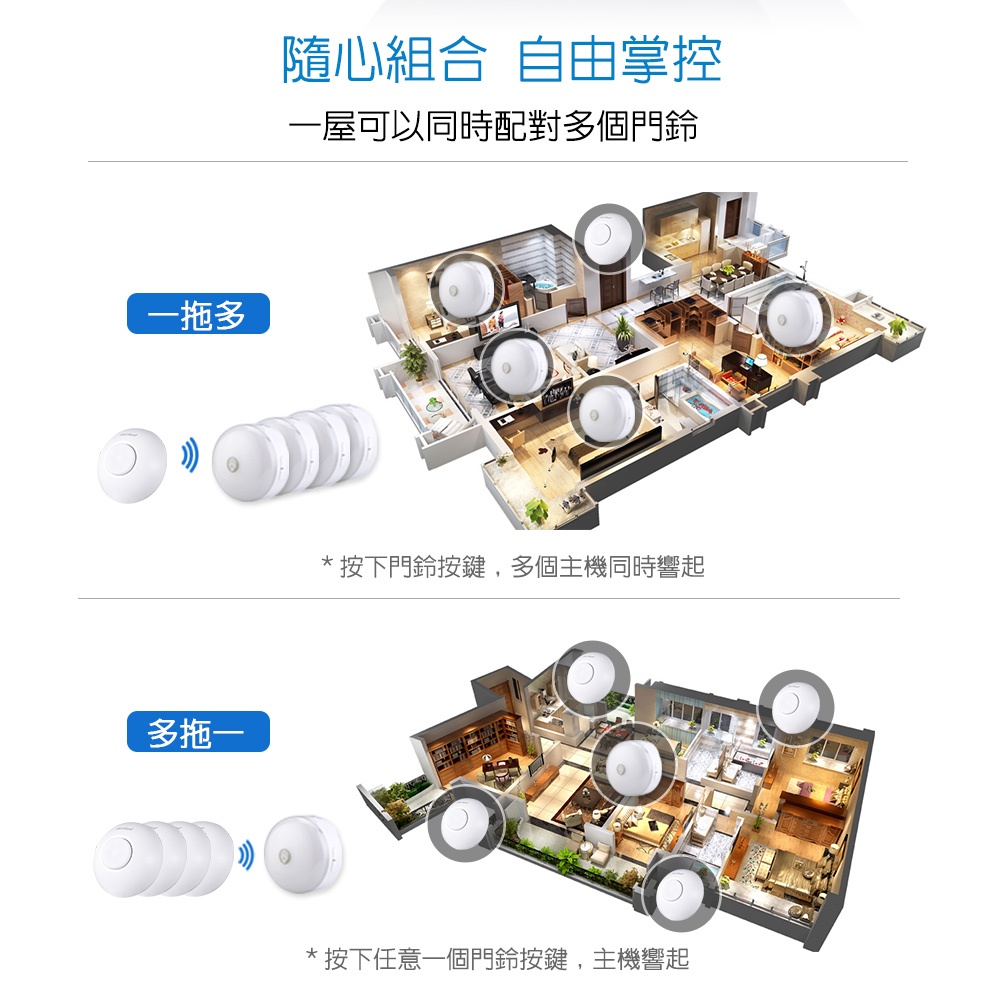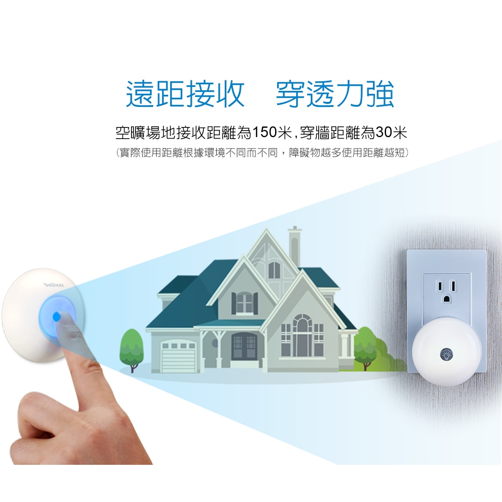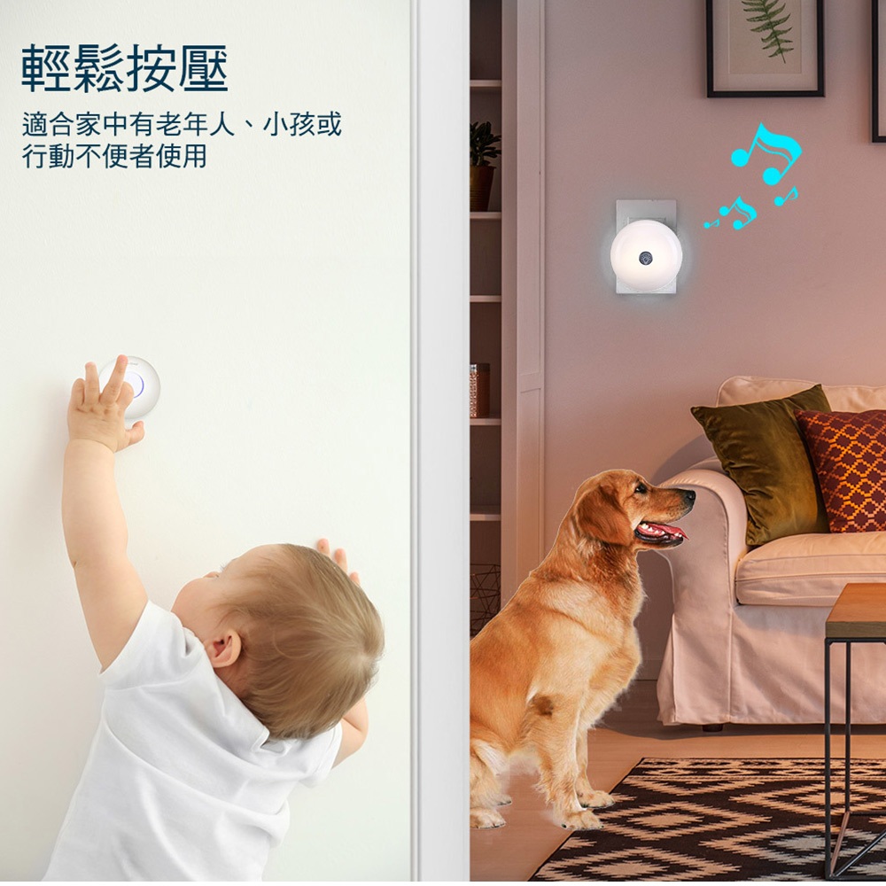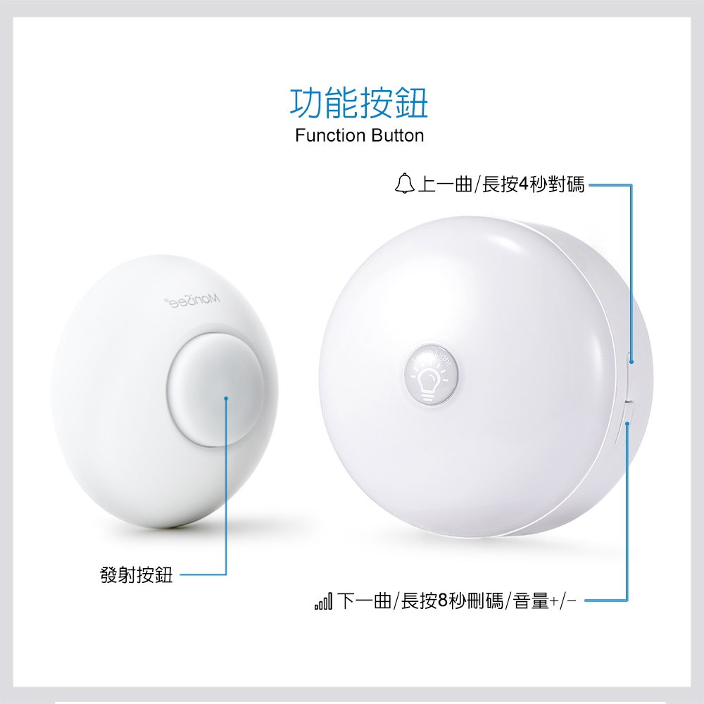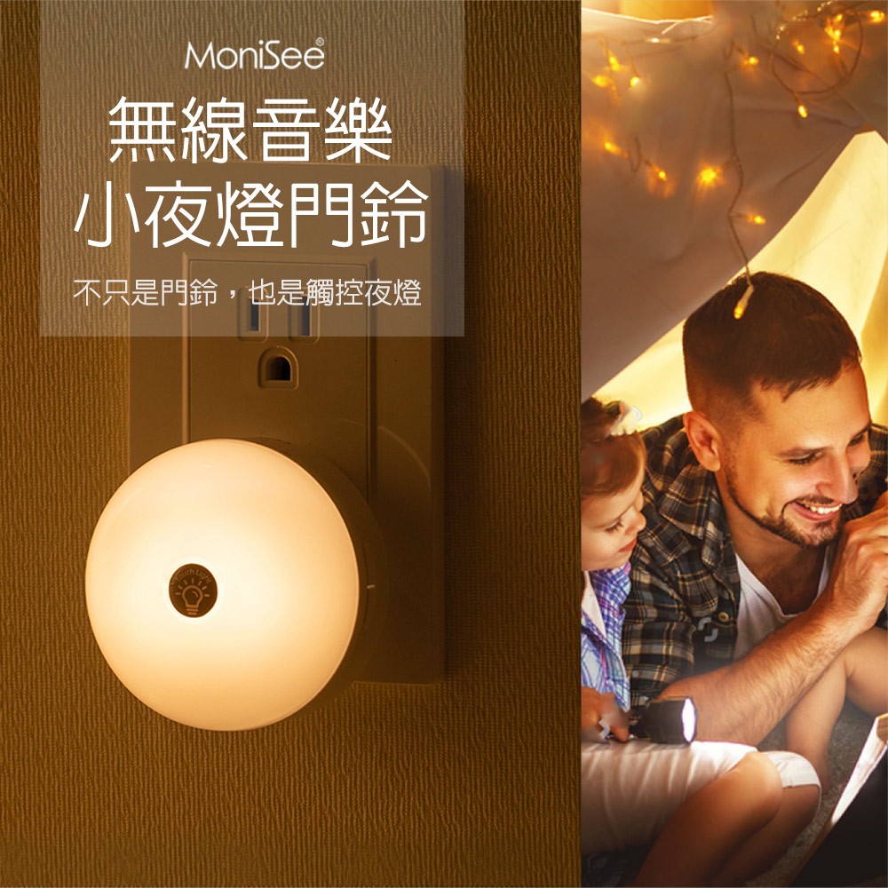【Monisee】北歐風觸控夜燈無線門鈴(電池款/套組/一對一) 小夜燈/床頭燈/辦公室門鈴/居家門鈴/音樂門鈴