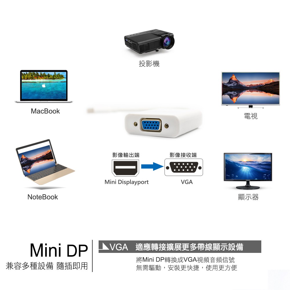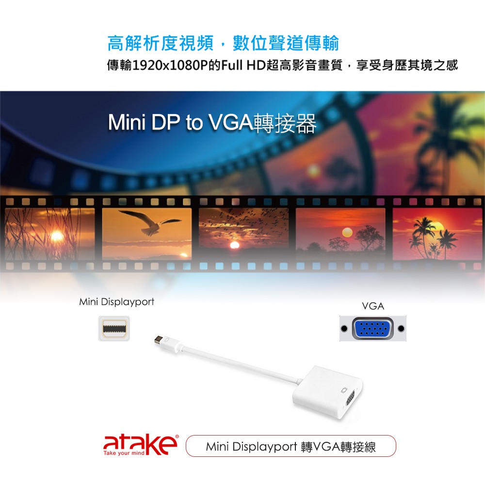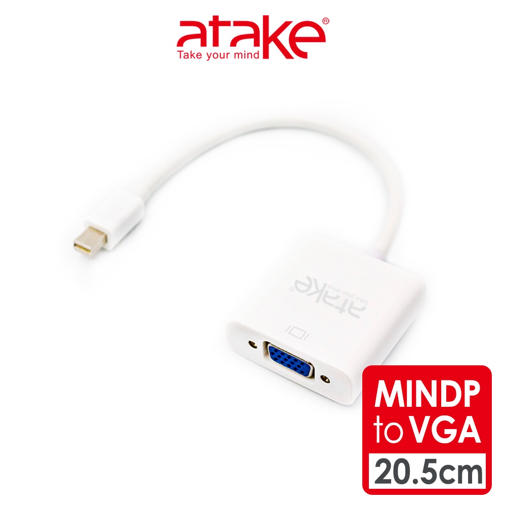 【atake】Mini Displayport轉VGA轉接線(20.5cm) MiniDP轉VGA轉接頭/轉換器