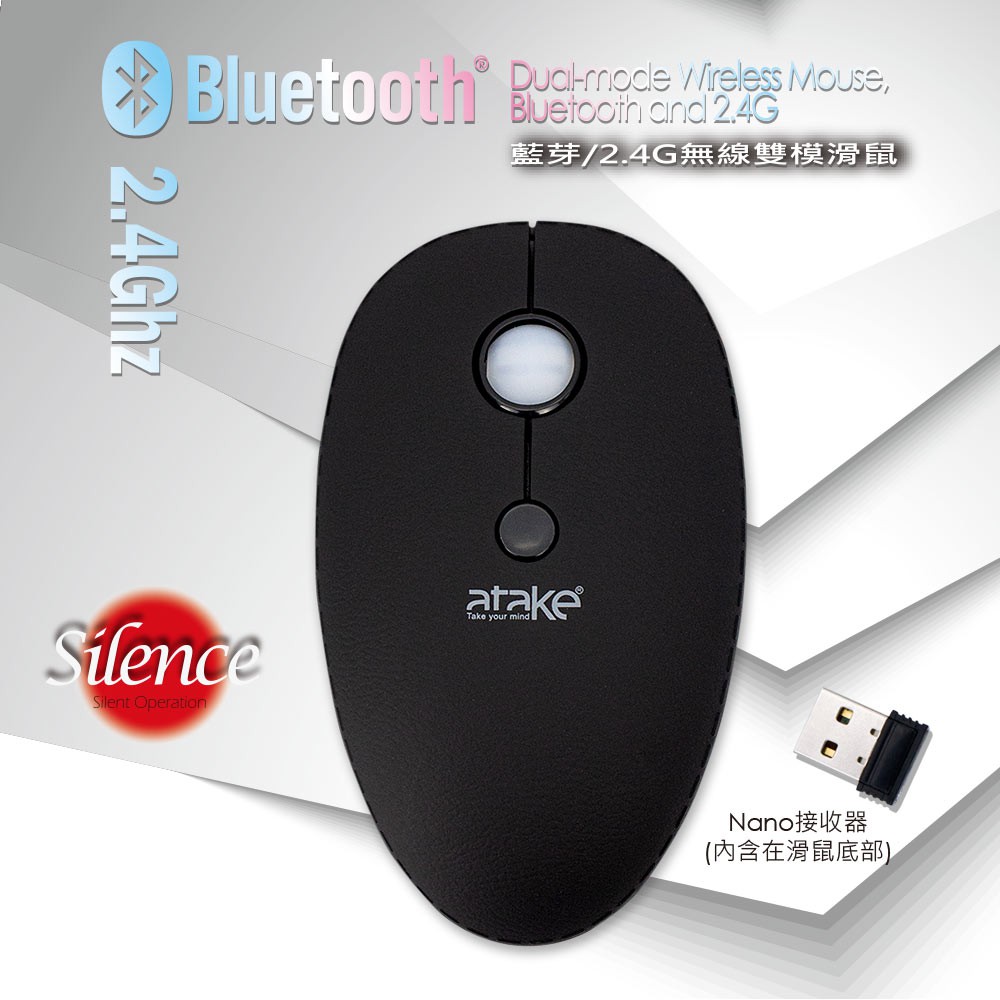 【aTake】福利品 皮革質感無線藍牙雙模靜音滑鼠(4段DPI切換) 雙模滑鼠/靜音滑鼠/無線滑鼠/藍牙滑鼠/皮革滑鼠